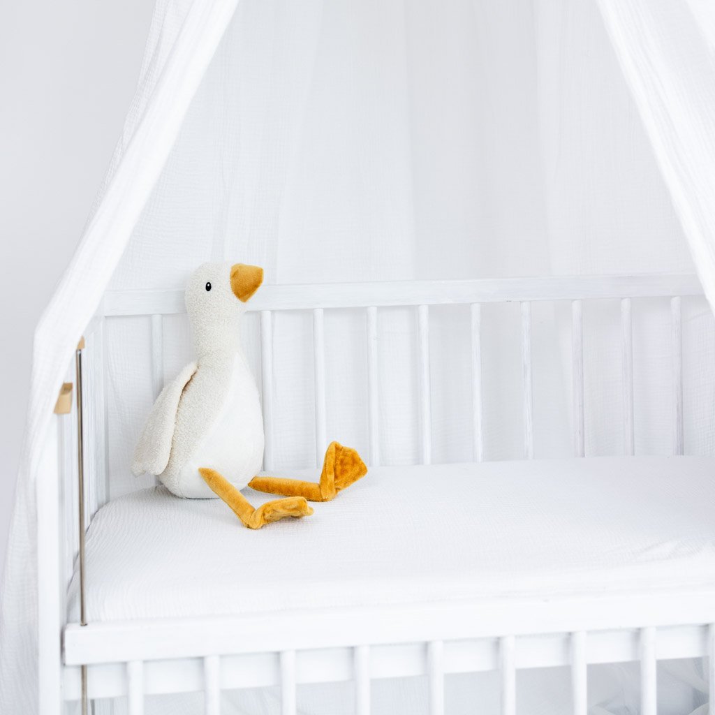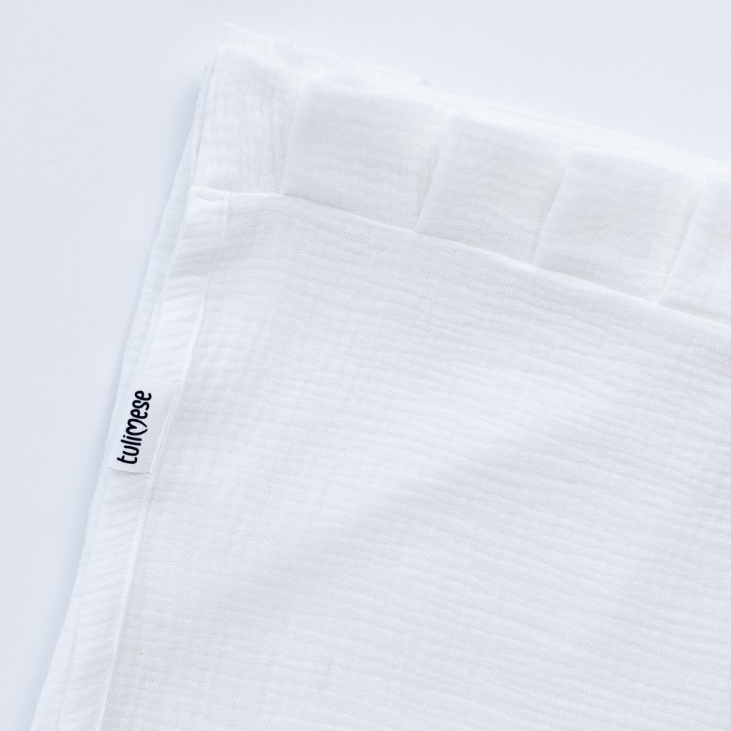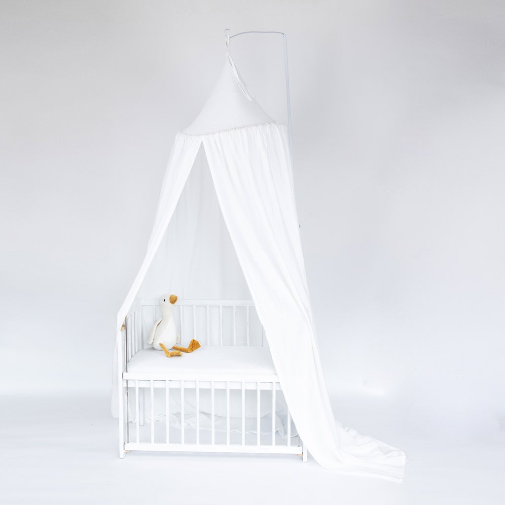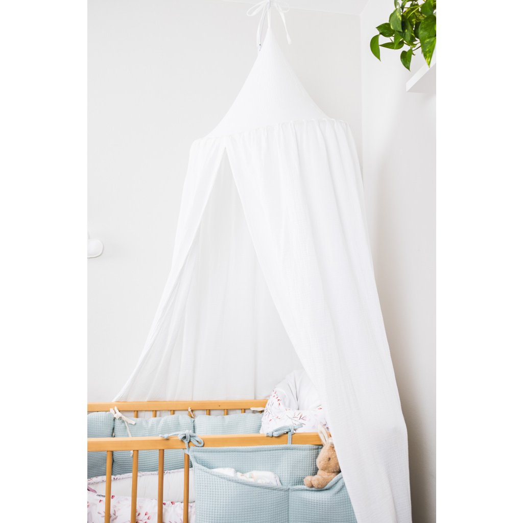 Mušelínový baldachýn je skvělý doplněk každé dětské postýlky. Nejde jen o designový prvek, jde o příjemné a nerušené prostředí pro klidný spánek. Zajistí pocit bezpečí a jistoty kolem hlavičky miminka. Omezí okolní světlo, hluk i případný průvan. Baldachýn lze zavěsit na strop nebo na pomocný kovový stojan. Baldachýn lze následně použít k vytvoření malého doupěte v dětském koutku nebo na zahradě.