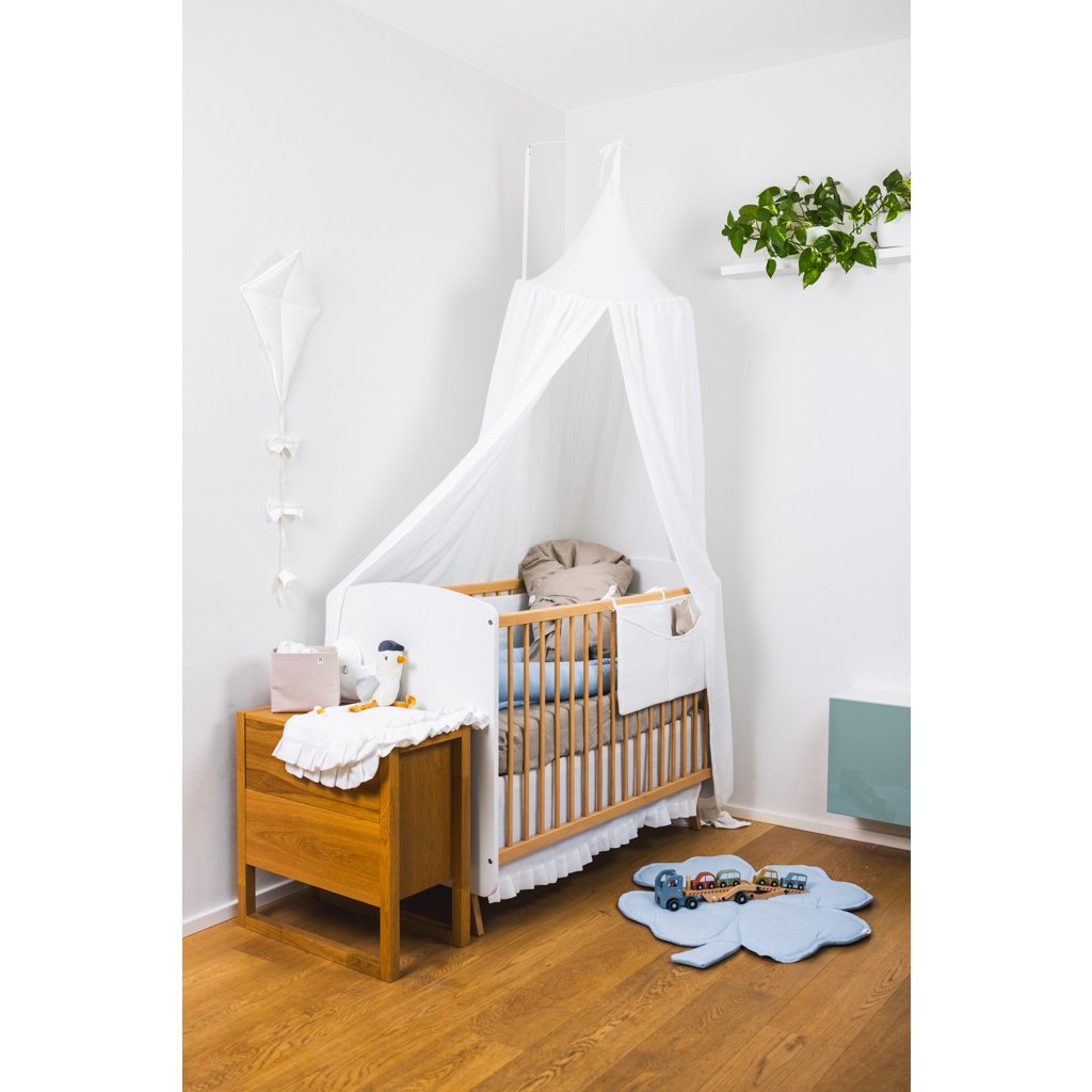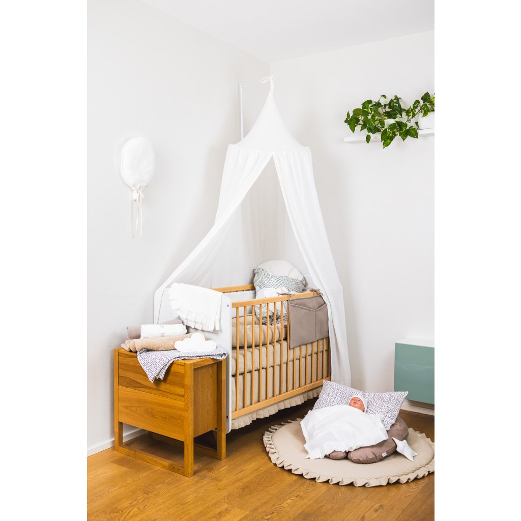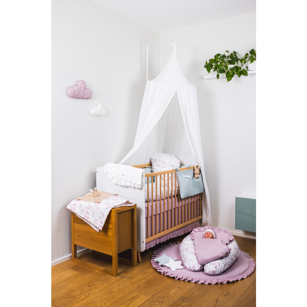 - Baldachýn je součástí barevně sladěné sady výrobků pro miminko SADY MUŠELÍNOVÉ JEDNOBAREVNÉ.