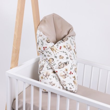Hnízdečko ušité z kvalitní bavlny v béžovém provedení s bílými abstraktními stromky. Barevná kombinace je vhodná pro kluky i holky.