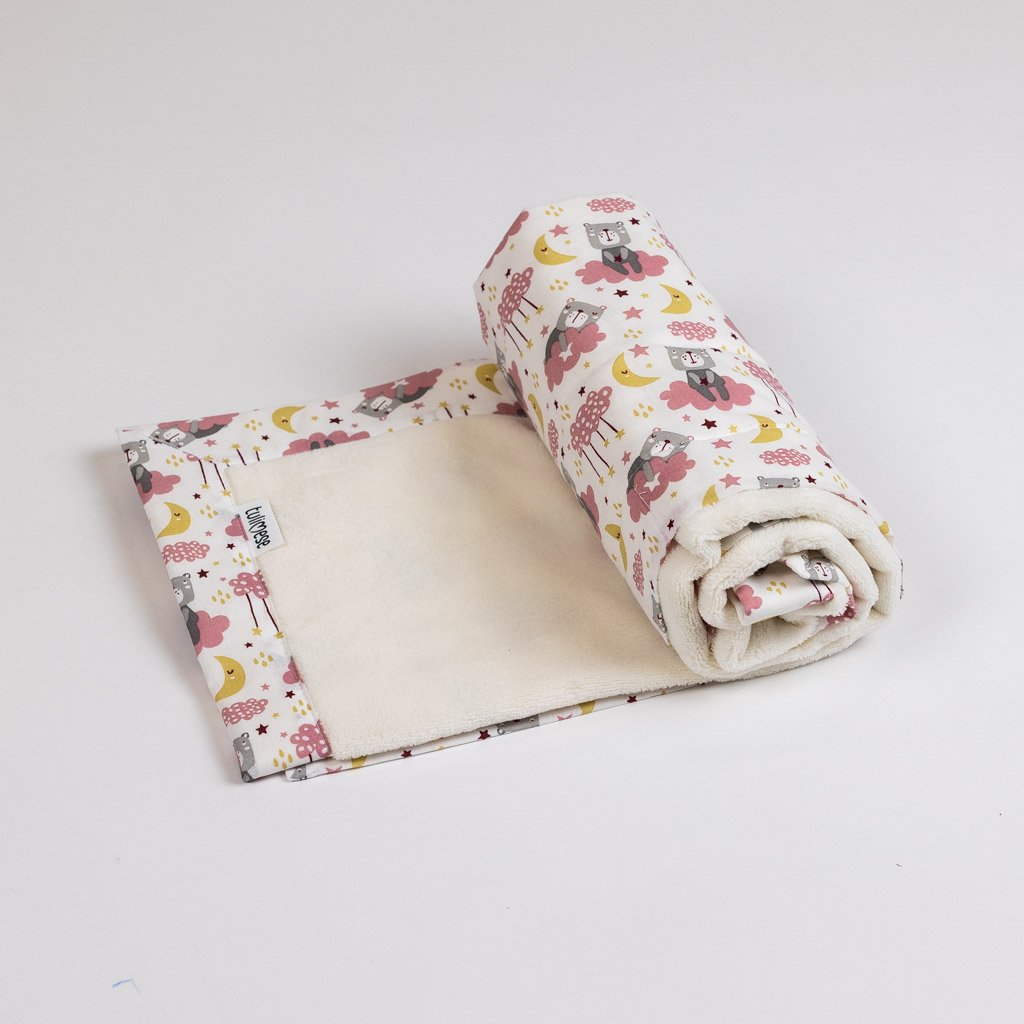 Originální extra jemná deka s jemným kožíškem ala francouzské minky. Vhodná hlavně pro čerstvě narozená miminka. Z jedné strany deky je kvalitní bavlna. Z druhé strany jemňoučký kožíšek. Deku lze dle aktuálního počasí otáčet, tj. měnit stranu, kterou bude miminko přikryté. Vhodná do kočárků, postýlek, hnízdeček i autosedaček.