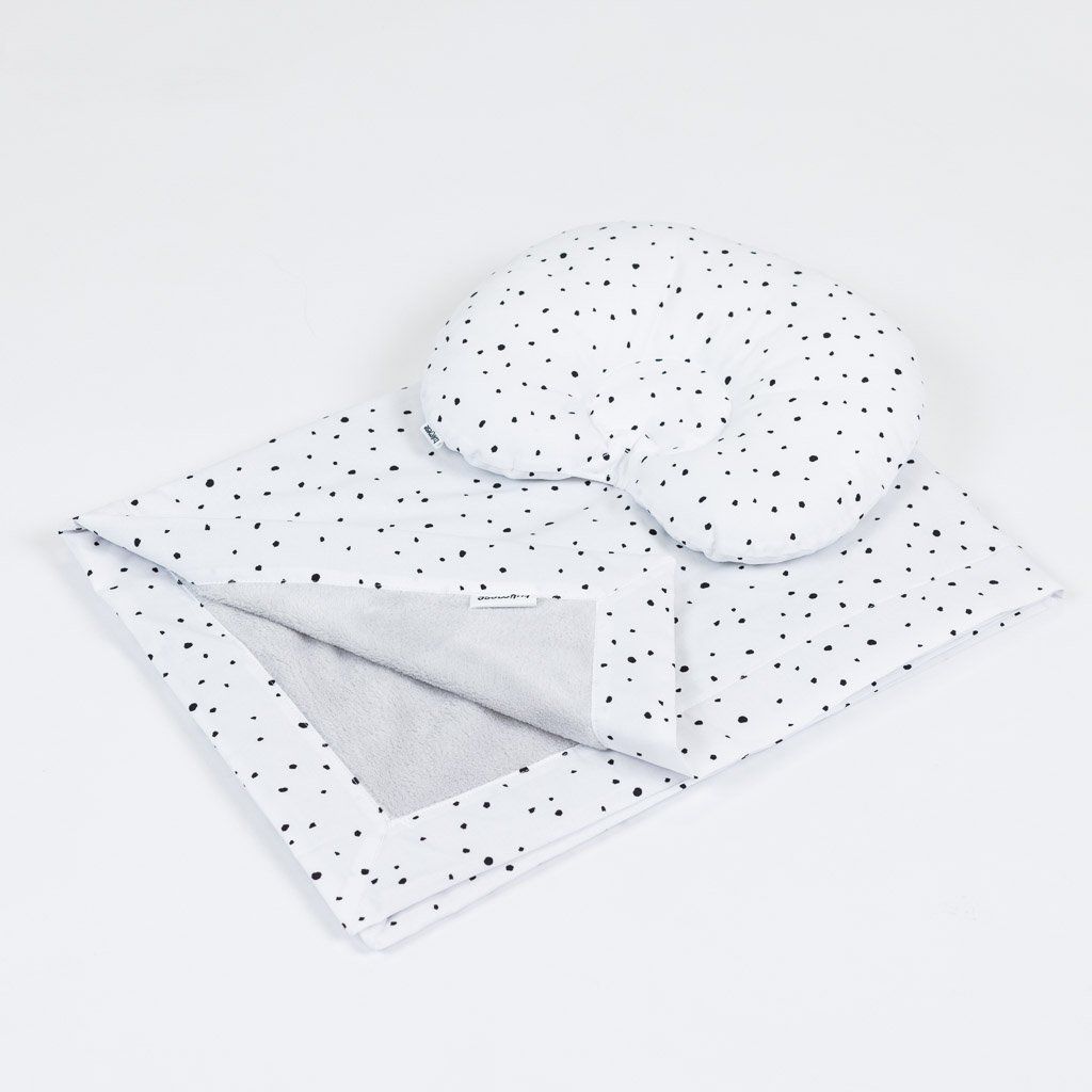 Celoroční souprava do kočárku černobílé tečky s šedou