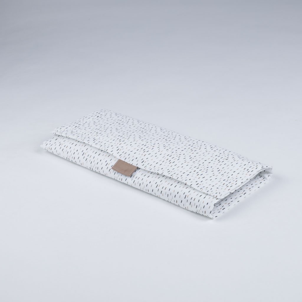 Cestovní přebalovací podložka je určená ke snadnějšímu přebalování miminek hlavně na cestách a u lékaře. Díky vnitřní bílé nepropustné vrstvě z hebkého froté nedochází k prosáknutí nebo stékání nečistot během přebalování. Podložku lze umístit na podkladní přebalovací pult, kočárek, postýlku, gauč či podlahu. Přebalovací podložka je vyplněna vatelínovou výplní, tak aby byla pro miminko pohodlná a příjemná. Součástí podložky jsou i kapsy ušité z bavlněného saténu, určené na přebalovací pomůcky, pleny a mastičky. Složenou podložku lze snadno umístit do přihrádky pod kočárek nebo do přebalovací tašky či větší kabelky. Cestovní přebalovací podložka může být i originálním dárečkem pro novopečené miminky.