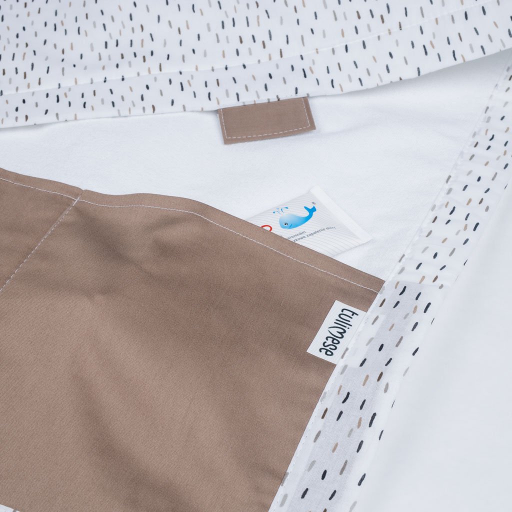 - Podložku jsme ušili z kombinace 100% bavlny s jemným froté s nepropustnou vrstvou z polyuretanu. Látka splňuje Oeko-Tex Standard 100 I. třída, tj. je vhodná pro děti do 3 let. Froté je nepropustné ale prodyšné.