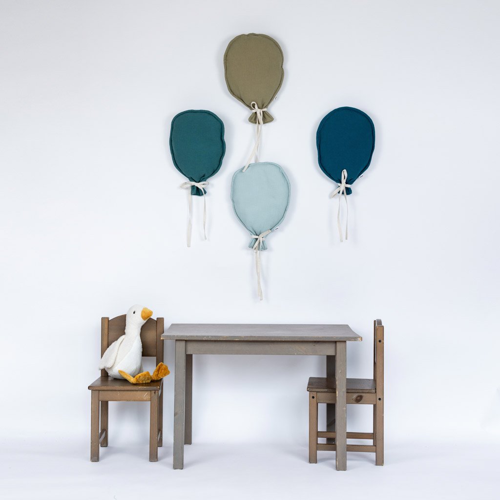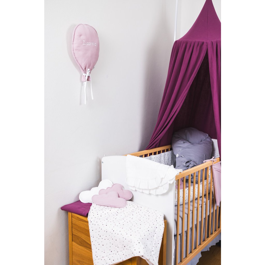 Dekorační nástěnný balónek k zútulnění každého dětského pokojíčku. Balónek šijeme z mušelínu v 15-ti barvách. Je vyplněn měkkou vatelínovou výplní a na zeď ho lze připevnit našitým suchým zipem. Spolu s dalšími výrobky z naši nabídky ve stejném barevném provedení vytvoříte elegantní a útulný pokojíček. Na balónek lze navíc vyšít jméno vašeho miminka, tak aby mělo vlastní prostor pro svůj růst a vývoj.