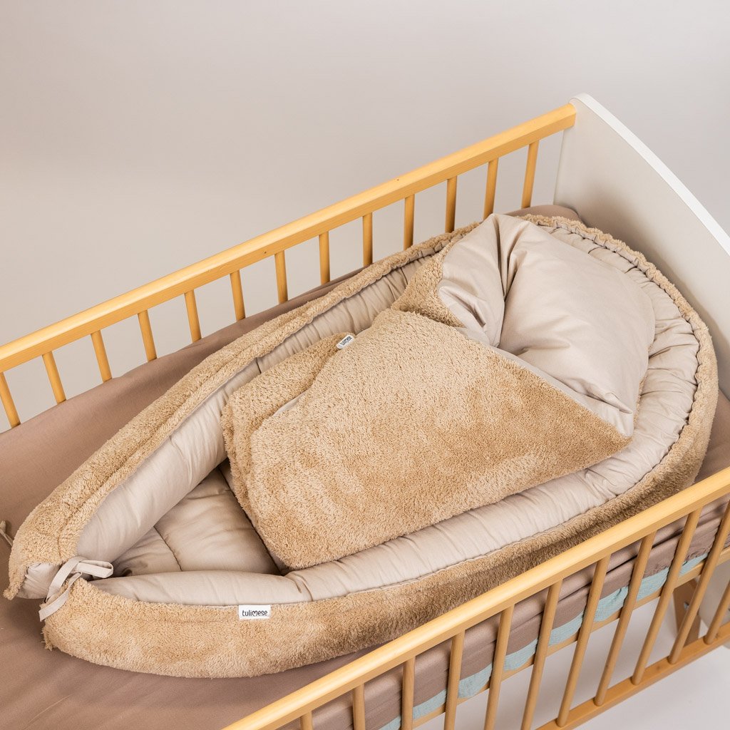 - Hnízdečko jsme ušili z kombinace 100% bavlny a heboučkého wellsoftu v béžovém odstínu.
