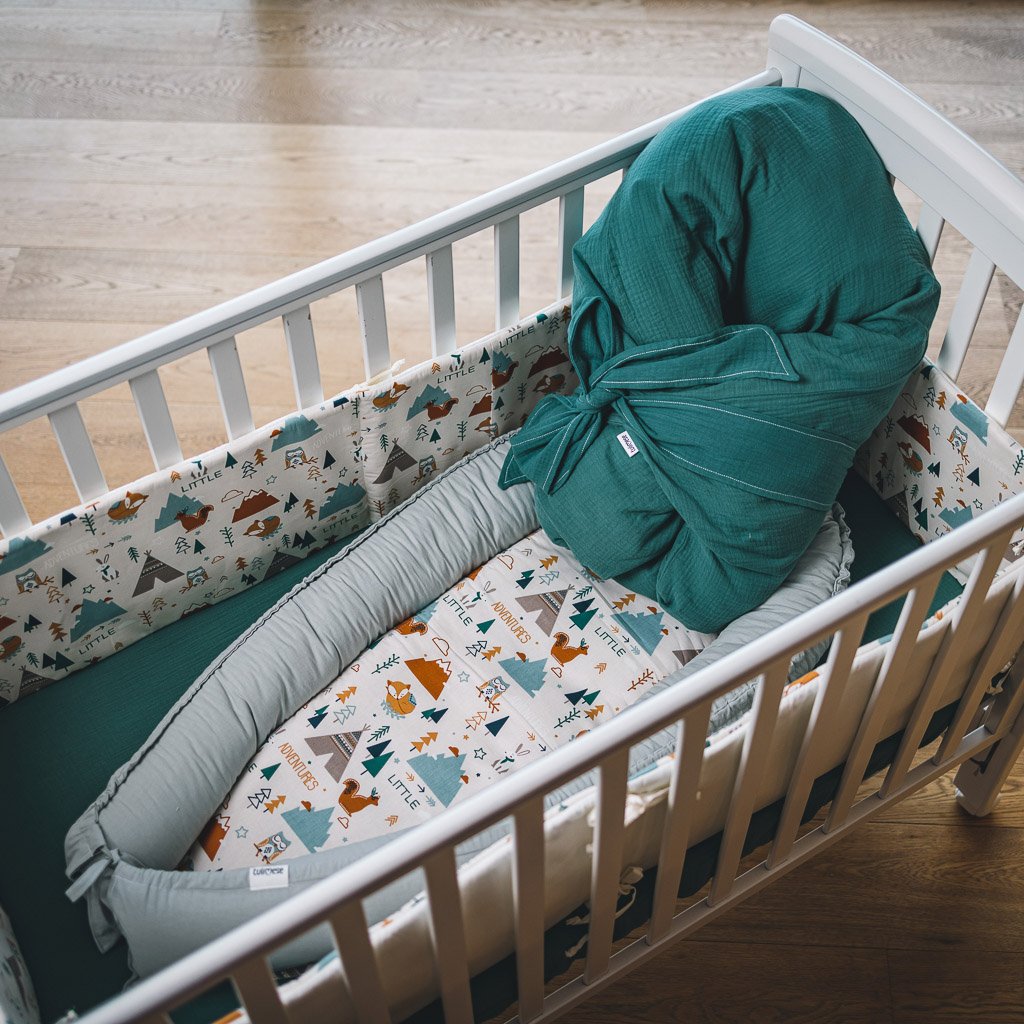 - Pokud se miminku bude v hnízdečku stále líbit, je možné rozvázat tkanice a dále používat hnízdečko i ve velké posteli jako postranní mantinely.