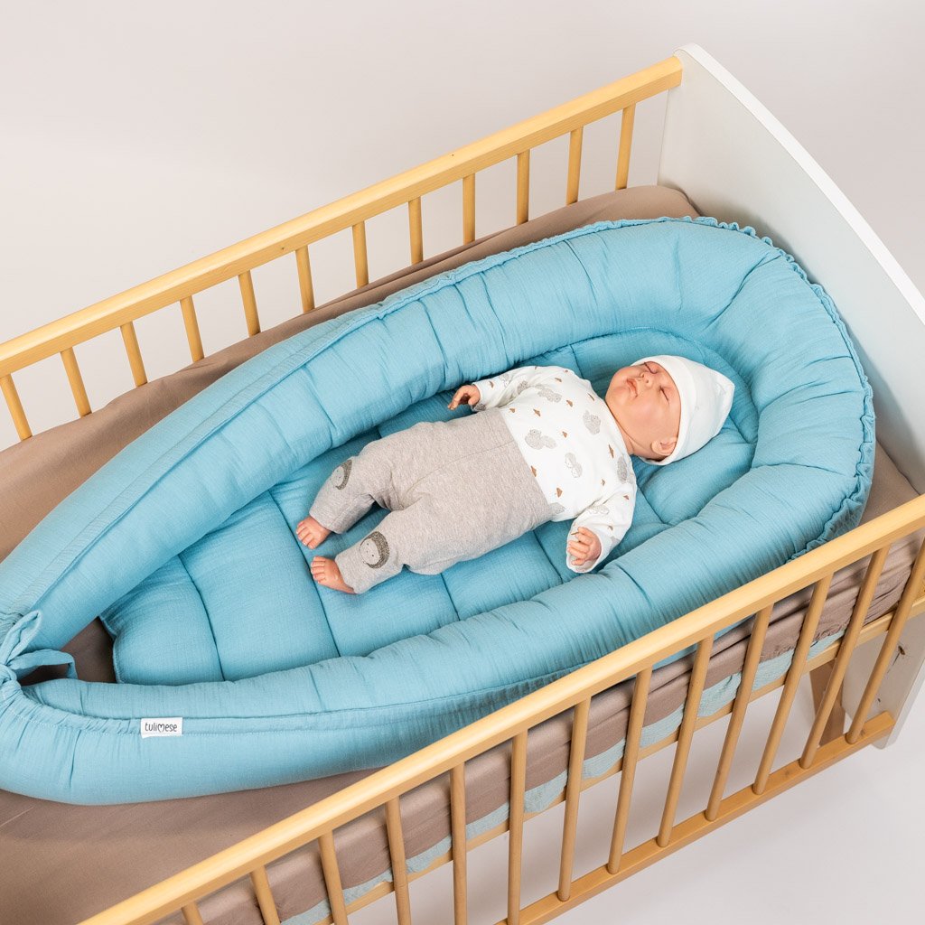 - Hnízdečko je součástí barevně sladěné sady výrobků pro miminko SADY MUŠELÍNOVÉ JEDNOBAREVNÉ.