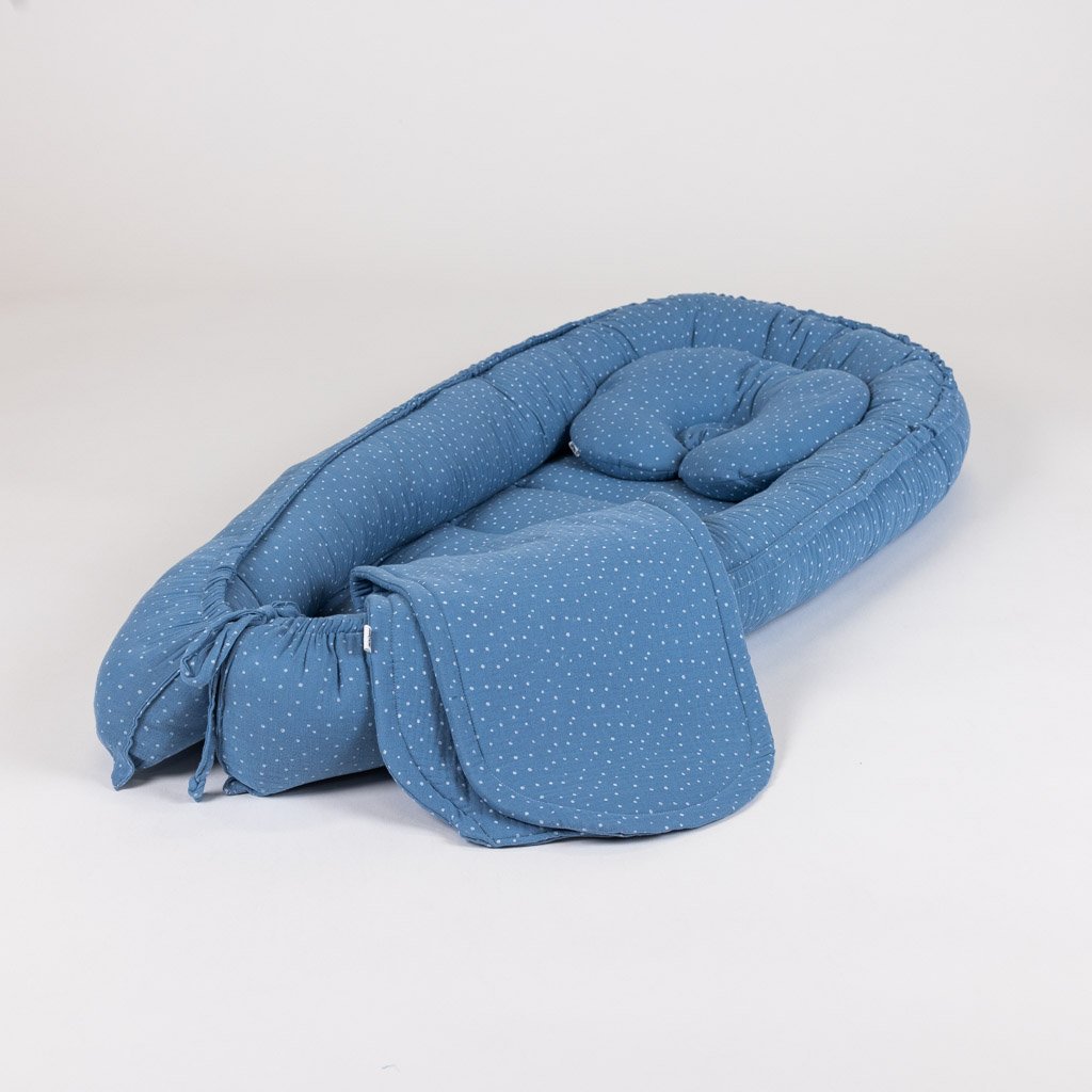 - Hnízdečko je součástí barevně sladěné sady výrobků pro miminko SADY MUŠELÍNOVÉ JEDNOBAREVNÉ.