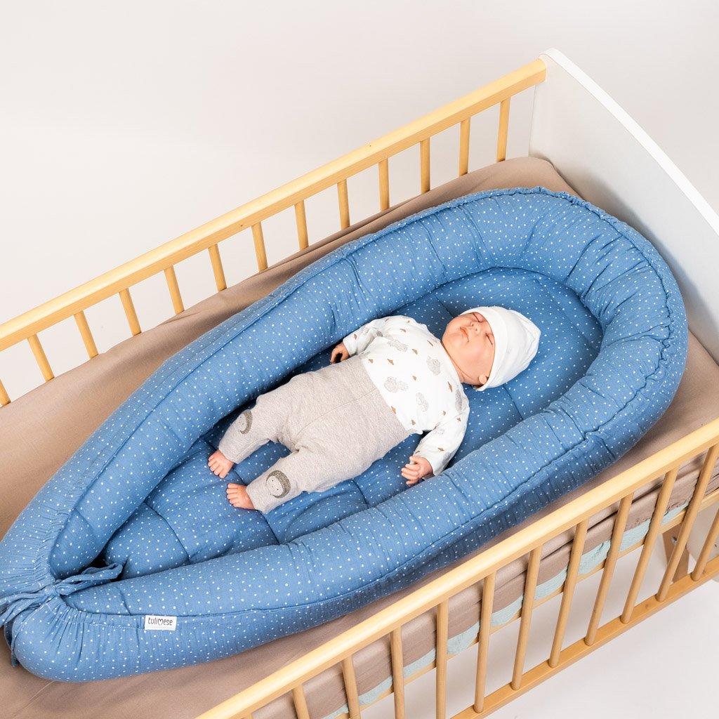 Originální hnízdečko pro pocit bezpečí a jistoty malého miminka, které přichází do velkého světa. Útulný prostor v hnízdečku mu navozuje známé pocity z maminčina bříška. Hnízdečko je velmi lehce přenosné, můžete ho položit na pohovku, na zem i do manželské postele. Díky zvýšeným okrajům je miminko chráněné před průvanem, hlukem a přímým světlem.
