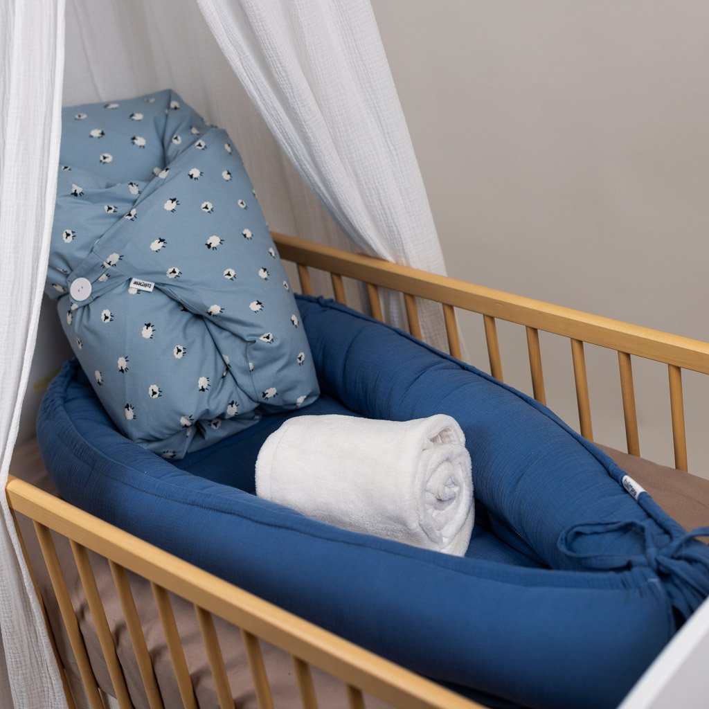 - Hnízdečko je součástí barevně sladěné sady výrobků pro miminko SADY MUŠELÍNOVÉ JEDNOBAREVNÉ.
