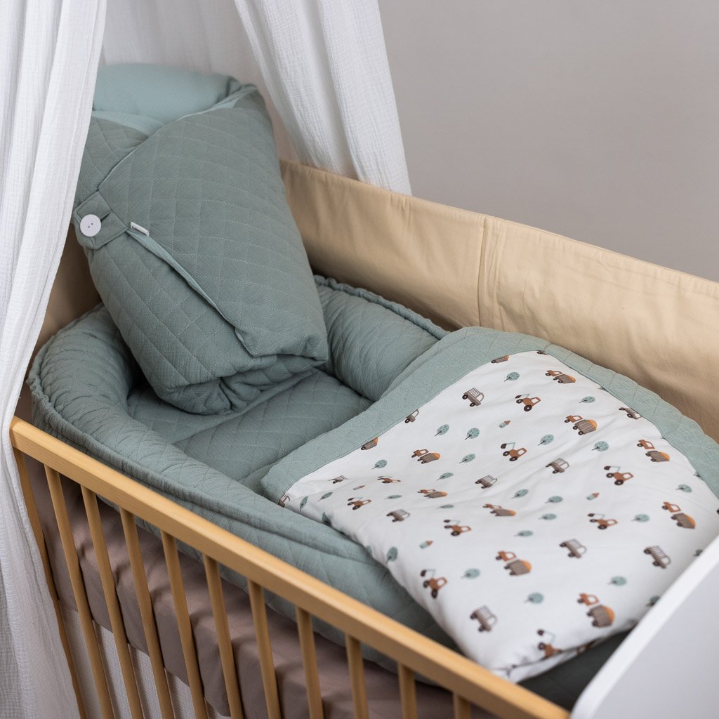 - Hnízdečko jsme ušili z extra jemného mušelínu. Látka splňuje Oeko-Tex Standard 100 I. třída, tj. je vhodná pro děti do 3 let.