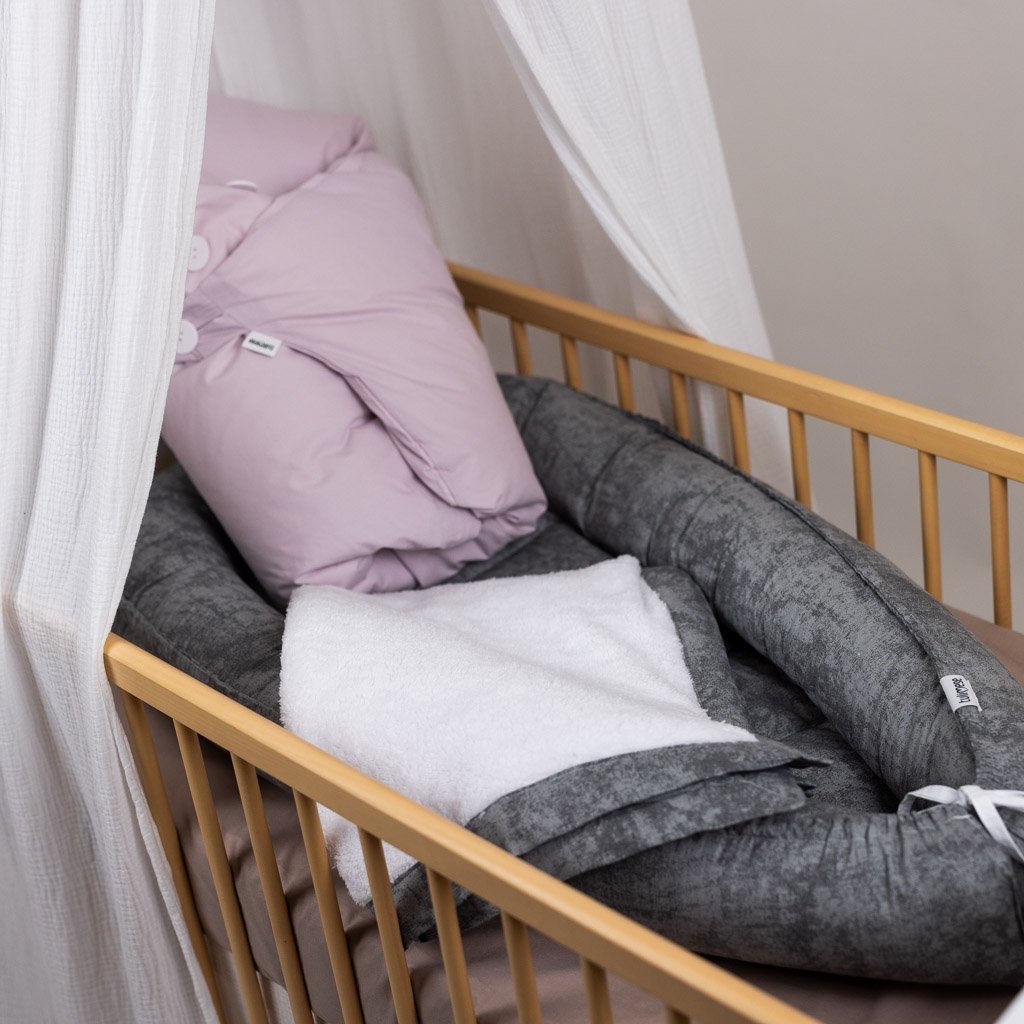 - Pokud se miminku bude v hnízdečku stále líbit, je možné rozvázat tkanice a dále používat hnízdečko i ve velké posteli jako postranní mantinely.