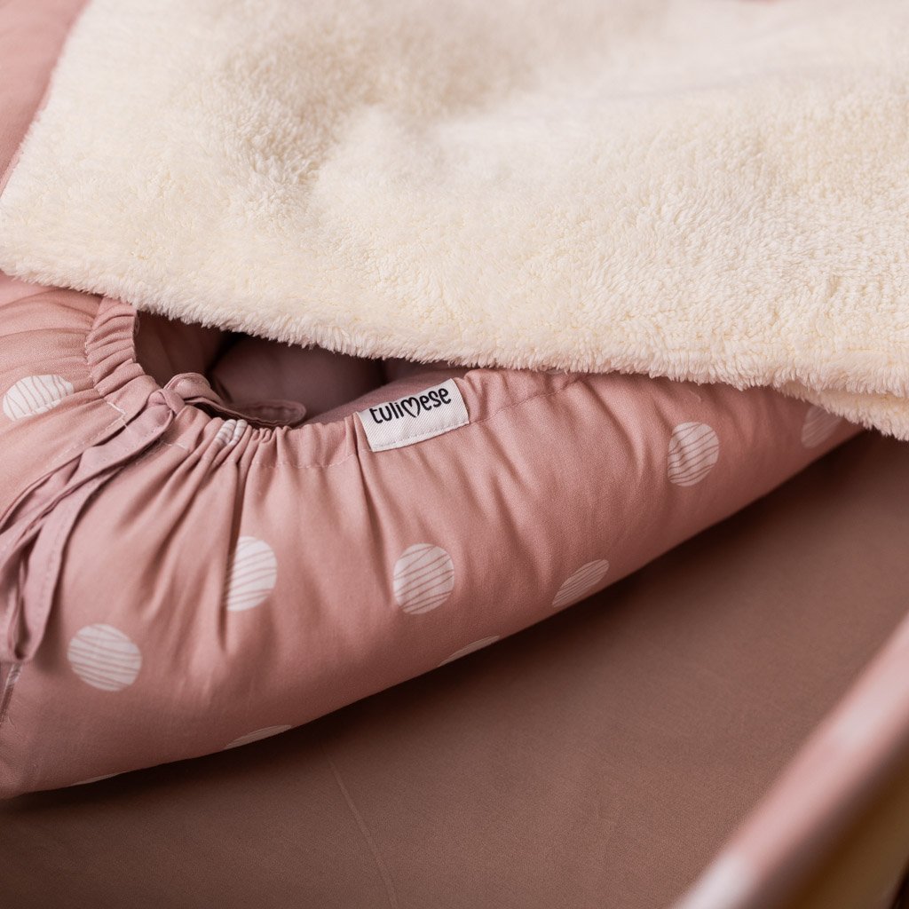 - Pokud se miminku bude v hnízdečku stále líbit, je možné rozvázat tkanice a dále používat hnízdečko i ve velké posteli jako postranní mantinely.