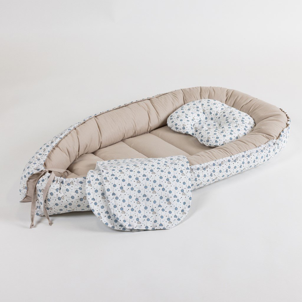 Originální hnízdečko pro pocit bezpečí a jistoty malého miminka, které přichází do velkého světa. Útulný prostor v hnízdečku mu navozuje známé pocity z maminčina bříška. Hnízdečko je velmi lehce přenosné, můžete ho položit na pohovku, na zem i do manželské postele. Díky zvýšeným okrajům je miminko chráněné před průvanem, hlukem a přímým světlem.