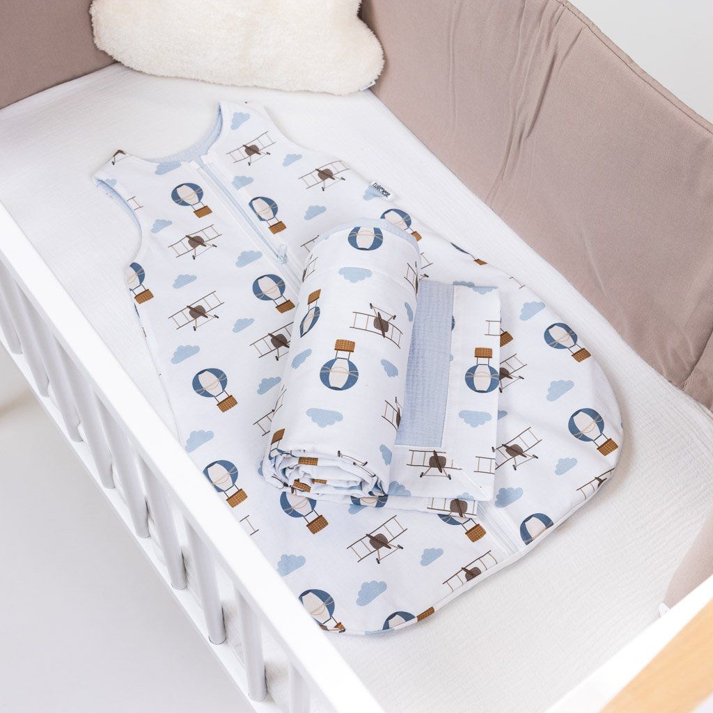 Spací pytel můžete zakoupit také jako zvýhodněnou sadu s dekou 70 × 100 cm ze stejného materiálu a ve sladěném barevném provedení.