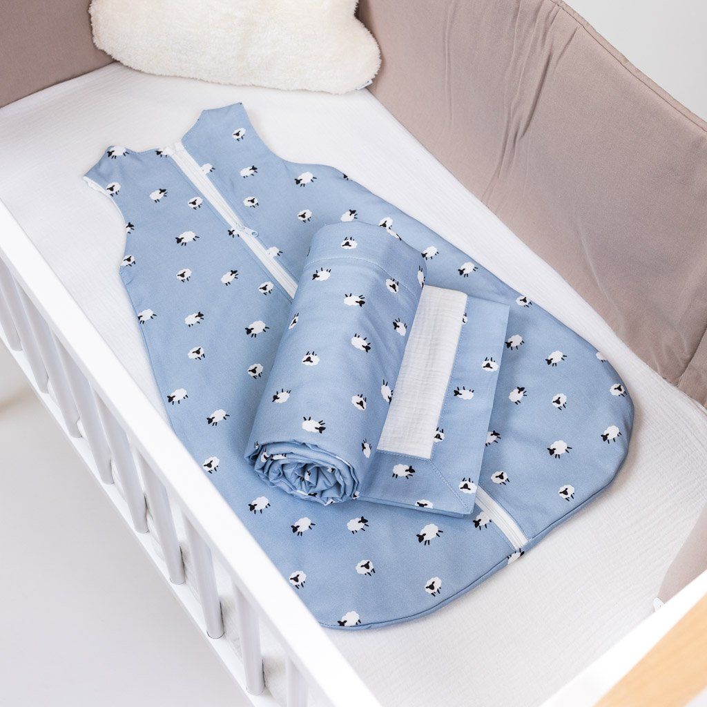 Spací pytel můžete zakoupit také jako zvýhodněnou sadu s dekou 70 × 100 cm ze stejného materiálu a ve sladěném barevném provedení.