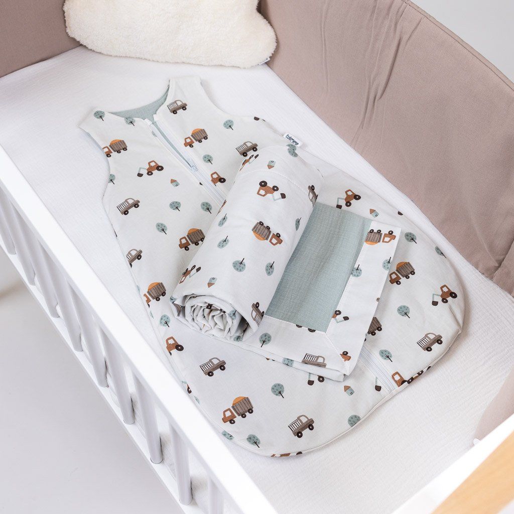 Spací pytel můžete zakoupit také jako zvýhodněnou sadu s dekou 70 × 100 cm ze stejného materiálu a ve sladěném barevném provedení.