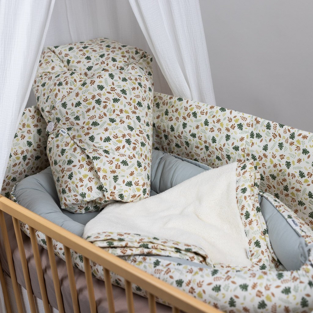 Mantinel je důležitou součástí každé postýlky. Chrání miminko před nárazem do tvrdých bočnic, zabraňuje zaklínění ručiček a nožiček mezi tyčky a zároveň snižuje rušivé vlivy světla, průvanu nebo hluku. Dodává pocit bezpečí a pomáhá vytvořit klidnější prostředí pro spánek i odpočinek.