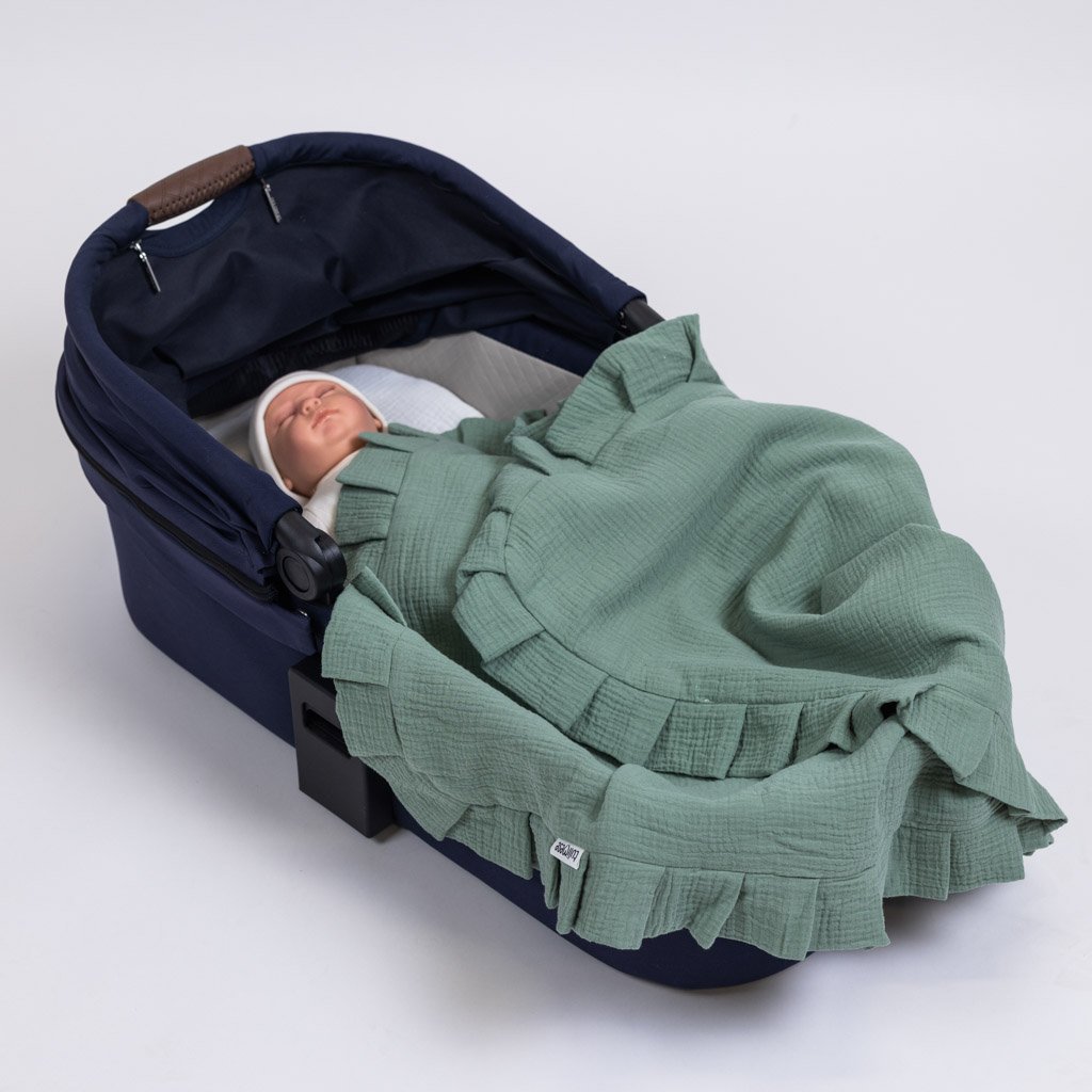 Stylová jemná a vzdušná mušelínová deka sloužící ke zpříjemnění chvilek odpočinku. Deku využijete jako lehkou přikrývku v parném létě, nebo jako celoroční osušku. Deku můžete použít také k zavinování miminka, nebo jako moskytiéru na kočárek. Velmi trendy produkt, který bude miminko používat až do raného dětství. Vhodná do kočárků, postýlek, hnízdeček i autosedaček. K dece je možno dokoupit i volánkový polštářek - viz. SOUPRAVA DO POSTÝLKY.