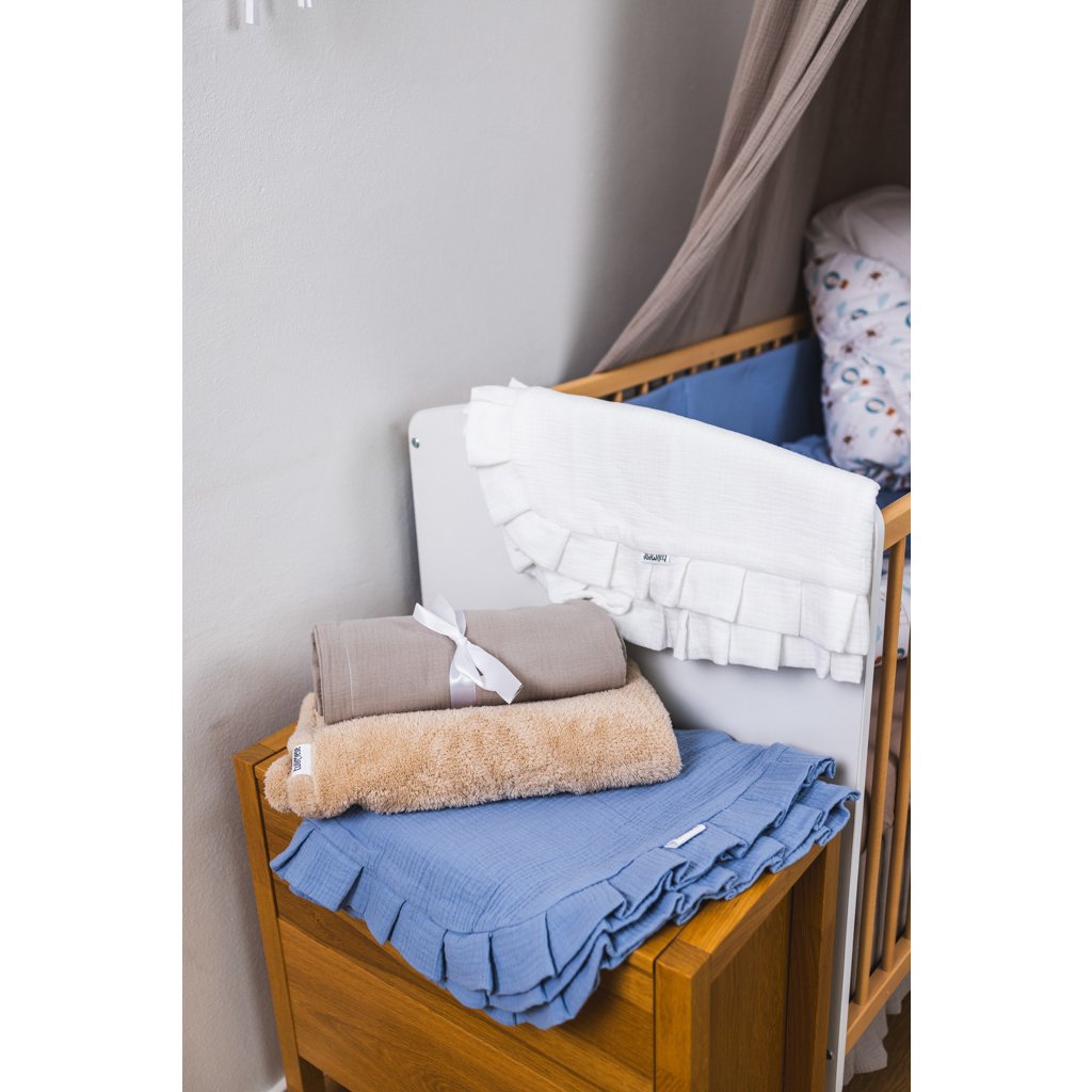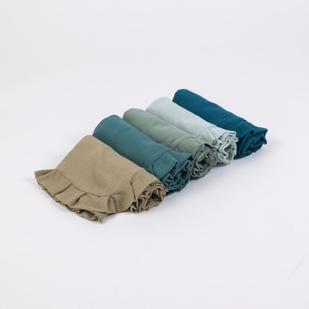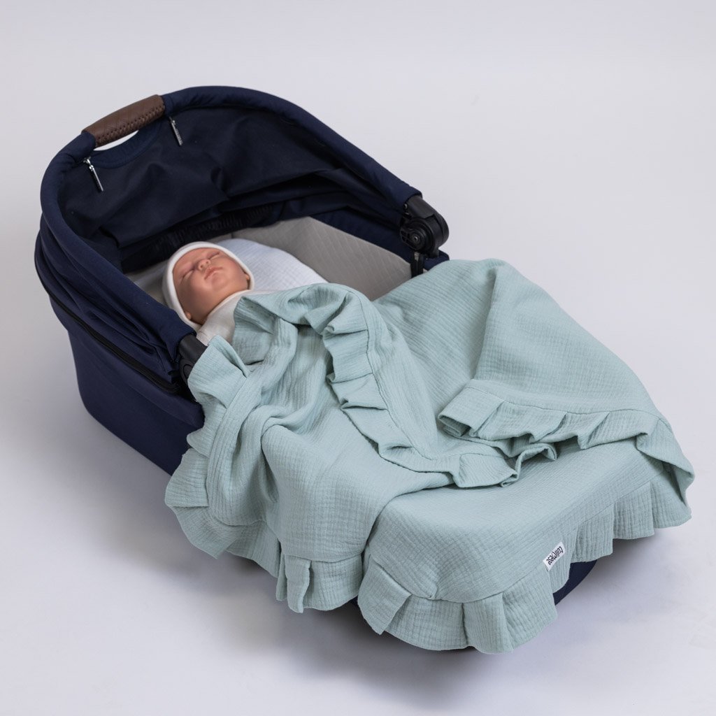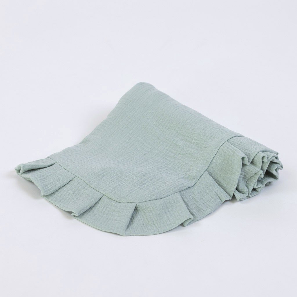 Mušelínová deka s volánem mentolová