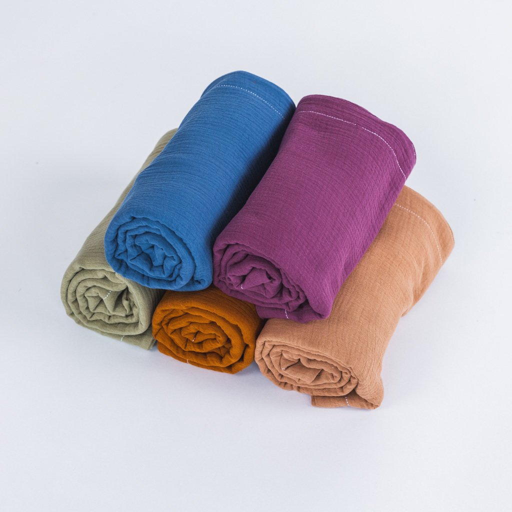 - Deku jsme ušili ze 100% mušelínové bavlny (dvojvrstvé gázoviny). Jedná se o nejjemnější formu tkaniny - je vzdušná, prodyšná, lehká a příjemná na tělo a zároveň dostatečně pevná, odolná a snadná na údržbu.