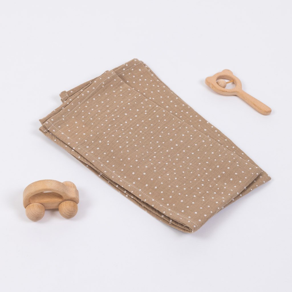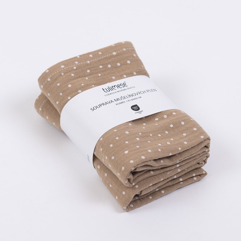 Mušelínové pleny: béžová puntíkatá souprava