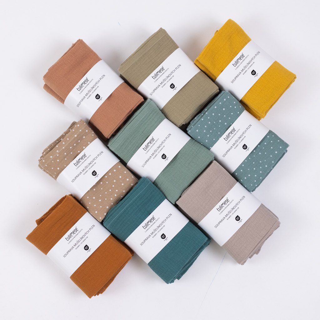 - Pleny jsou součástí barevně sladěné sady výrobků pro miminko SADY MUŠELÍNOVÉ JEDNOBAREVNÉ.