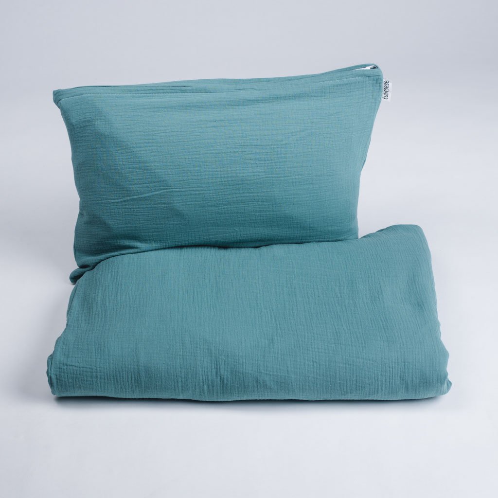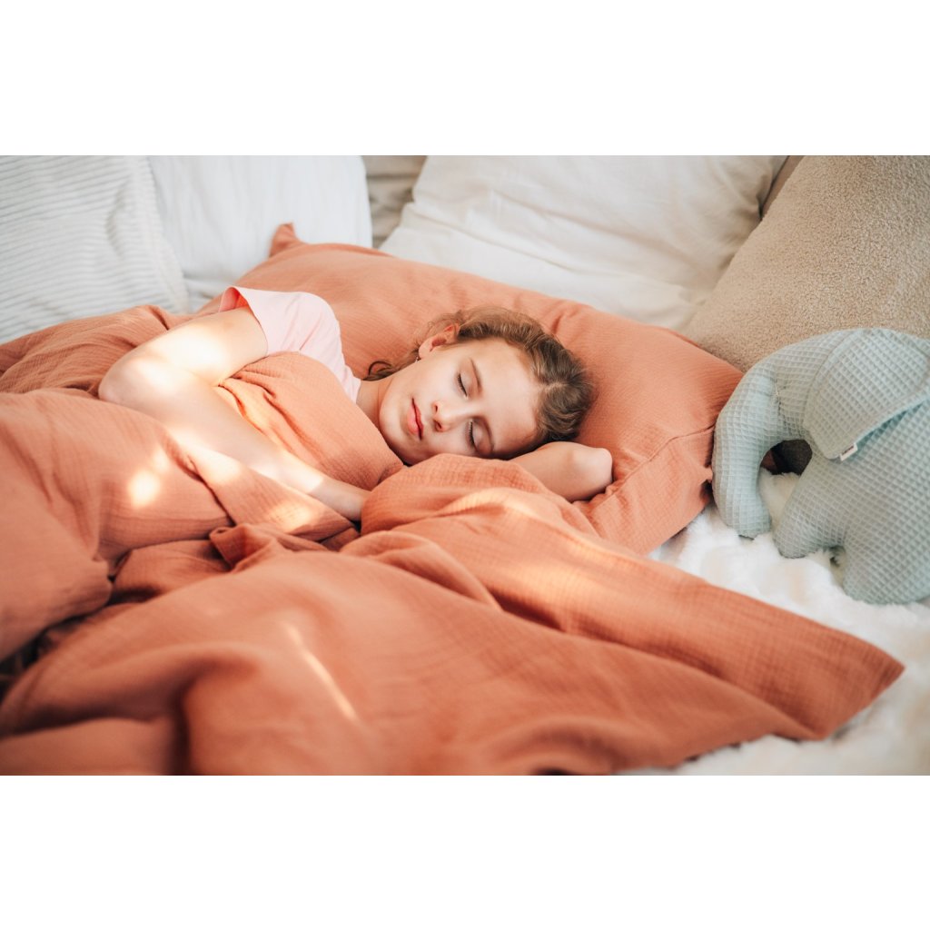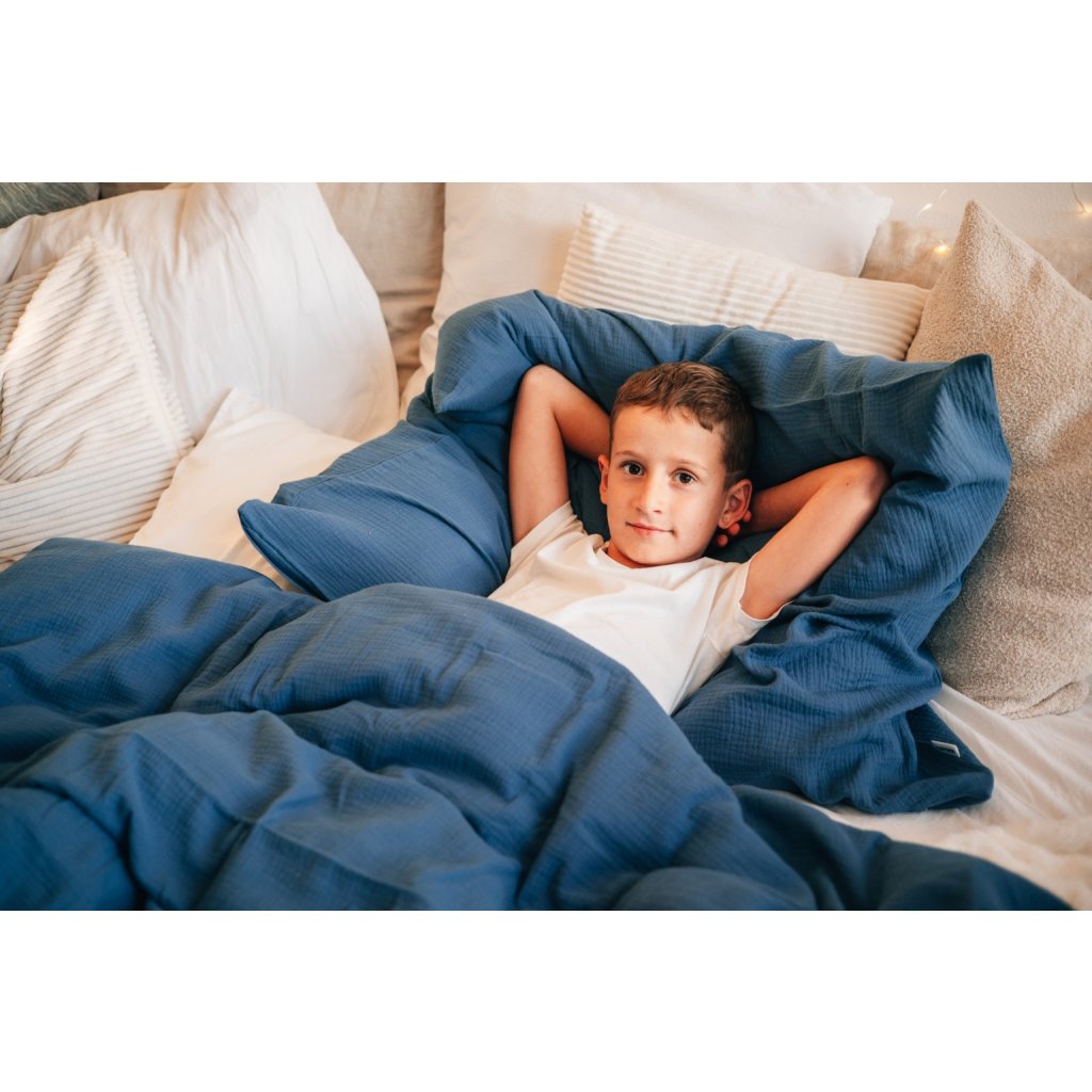 - Povlečení jsme ušili z extra jemného mušelínu. Látka splňuje Oeko-Tex Standard 100 I. třída, tj. je vhodná pro děti do 3 let.