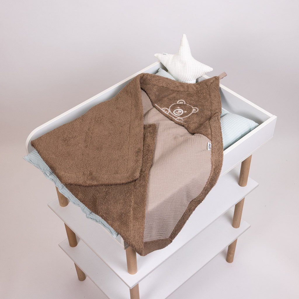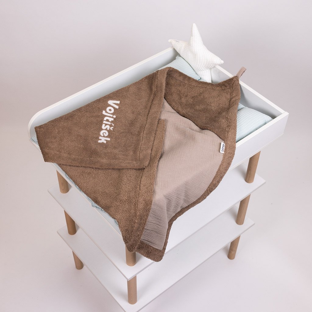 Kvalitní dvouvrstvá osuška kombinující hřejivé froté zvenku a jemný mušelín uvnitř. Na přání vám osušku ozdobíme výšivkou zvířátka nebo jménem dítěte, čímž vznikne krásný a osobní kousek do výbavičky.