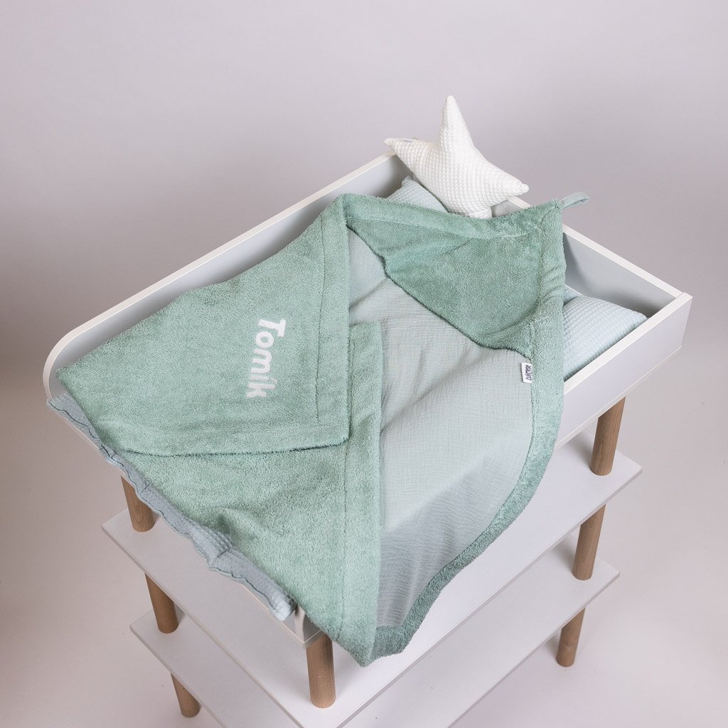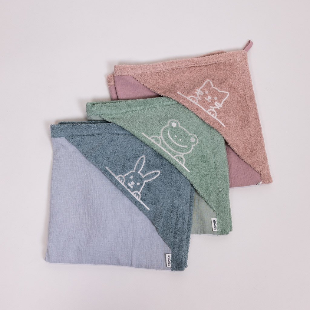 Kvalitní dvouvrstvá osuška kombinující hřejivé froté zvenku a jemný mušelín uvnitř. Na přání vám osušku ozdobíme výšivkou zvířátka nebo jménem dítěte, čímž vznikne krásný a osobní kousek do výbavičky.