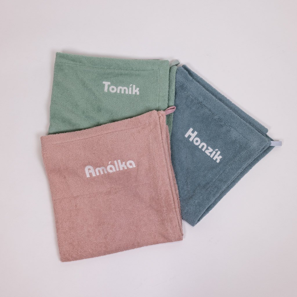 - Osušku jsme ušili z kombinace hřejivého froté zvenku a jemného mušelínu uvnitř.