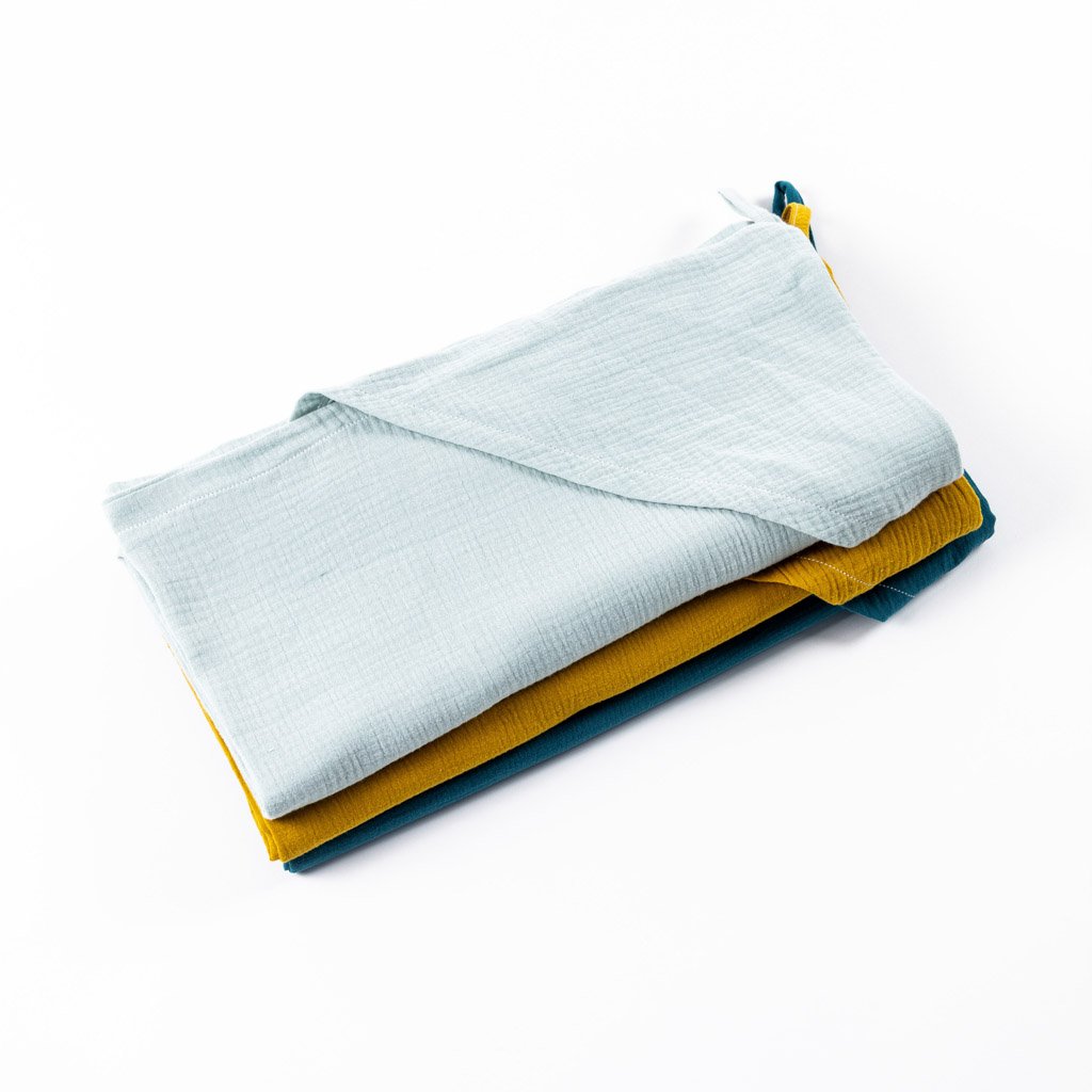 - Osušku jsme ušili z extra jemného mušelínu. Jedná se o nejjemnější formu tkaniny - je vzdušná, prodyšná, lehká a příjemná na tělo a zároveň dostatečně pevná, odolná a snadná na údržbu.