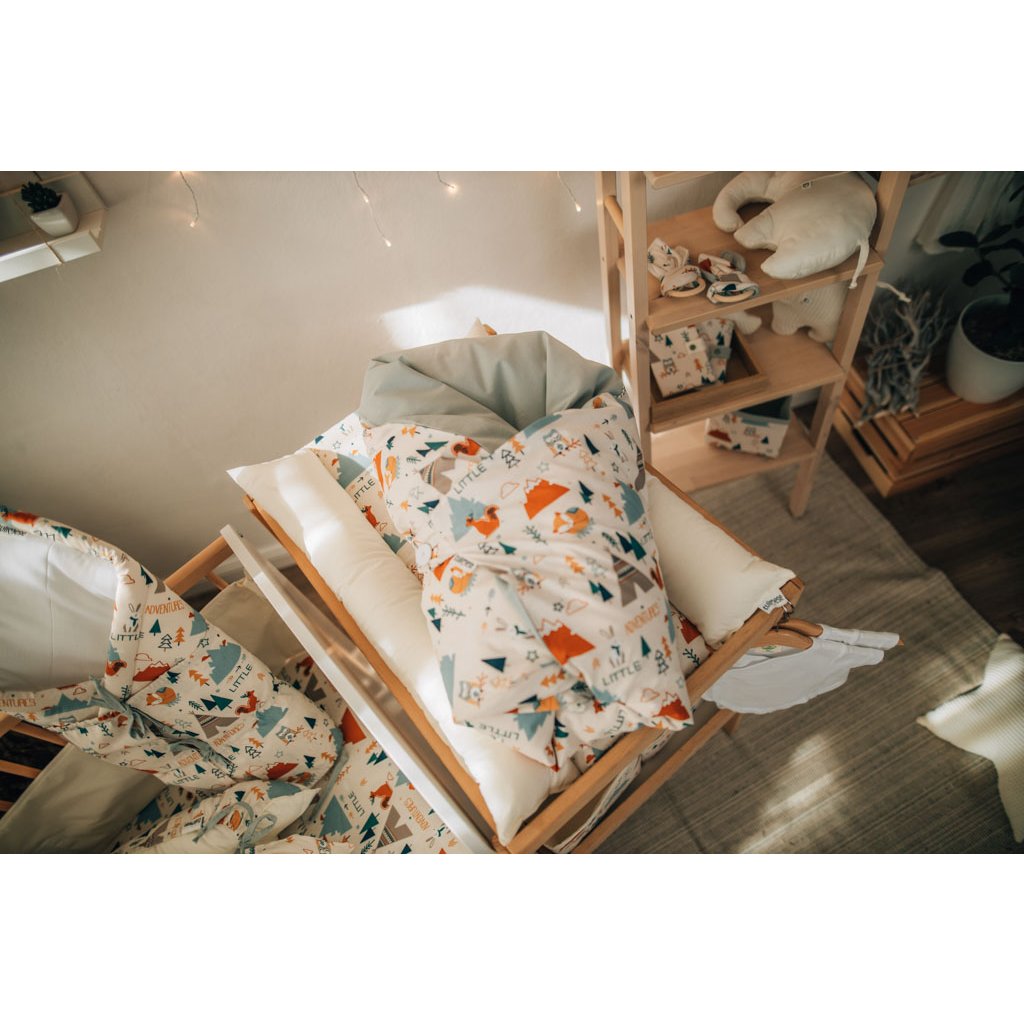 ZAPÍNÁNÍ NA KNOFLÍKY A MAŠLI + PODKLADNÍ POLŠTÁŘEK – polštářek zajišťuje zvýšenou oporu pod hlavičkou miminka, která pomáhá při rýmě nebo refluxu. Lze využít i jako měkkou podložku. Polštářek je vyplněn kvalitním husím peřím. Součástí této varianty je péřová výplň i povlak.