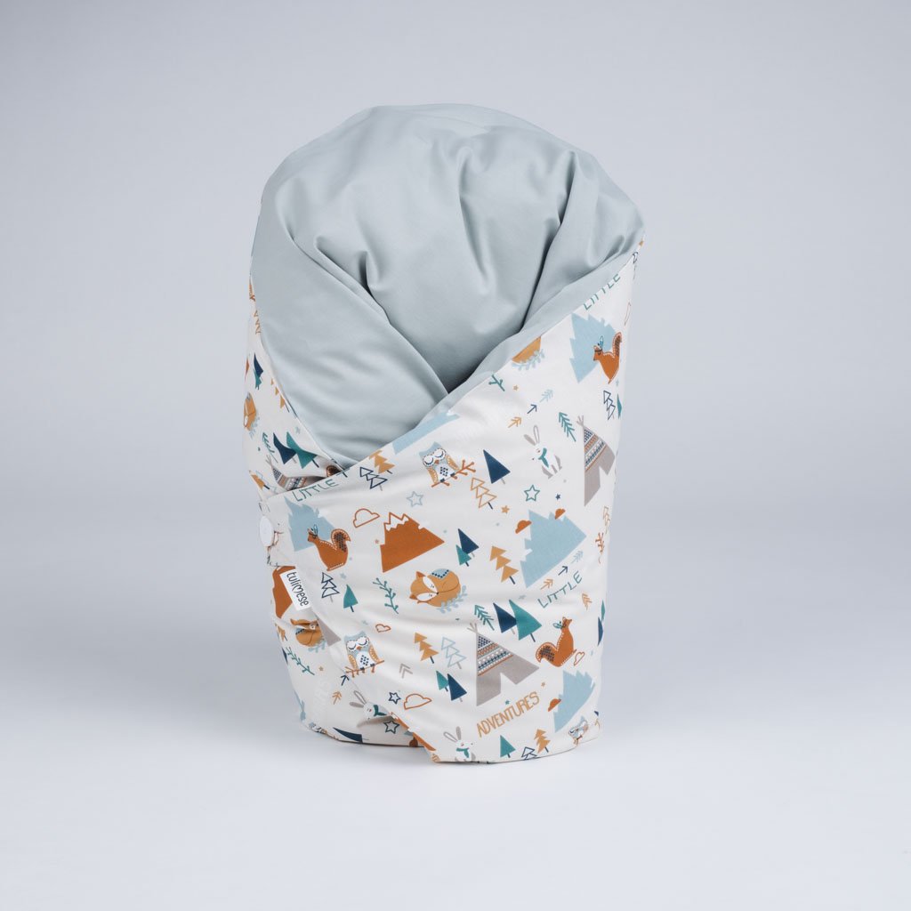 Zavinovačka má čtvercový střih s jedním zakulaceným rohem – osvědčený tvar, který skvěle funguje při každodenním zavinování. Vybrat si můžete ze tří velikostí podle věku a váhy miminka: