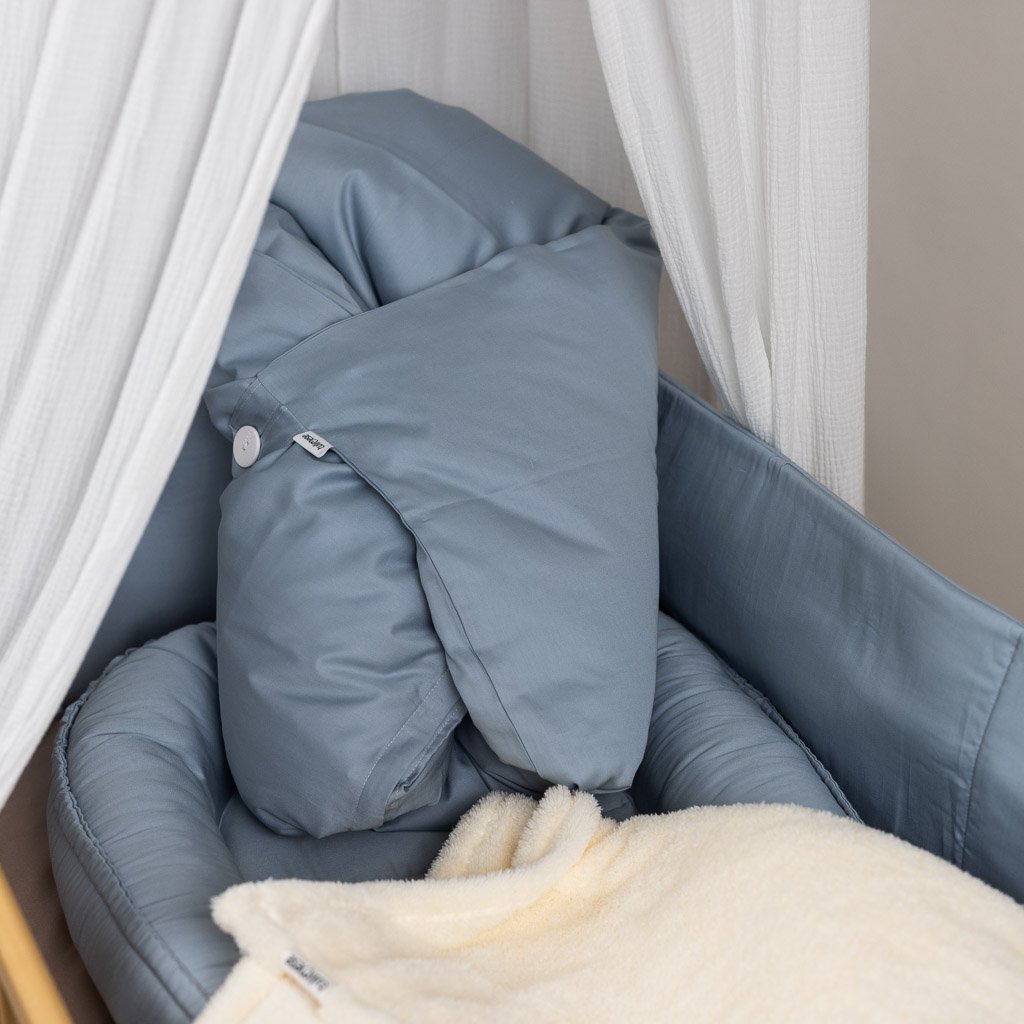 ZAPÍNÁNÍ NA KNOFLÍKY A MAŠLI + PODKLADNÍ POLŠTÁŘEK – polštářek zajišťuje zvýšenou oporu pod hlavičkou miminka, která pomáhá při rýmě nebo refluxu. Lze využít i jako měkkou podložku. Polštářek je vyplněn kvalitním husím peřím. Součástí této varianty je péřová výplň i povlak.