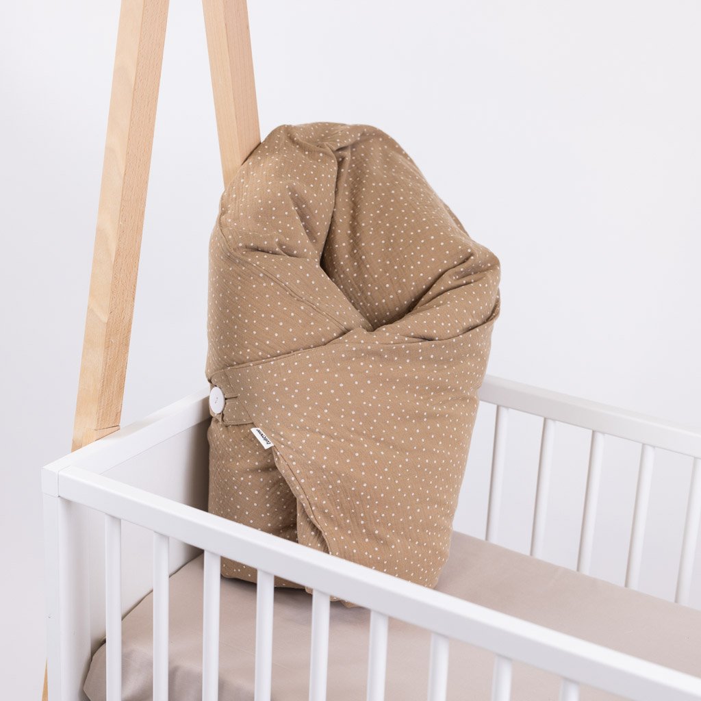 Péřová zavinovačka mušelínová béžová s puntíkem