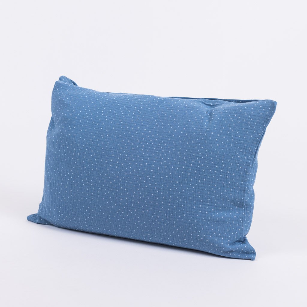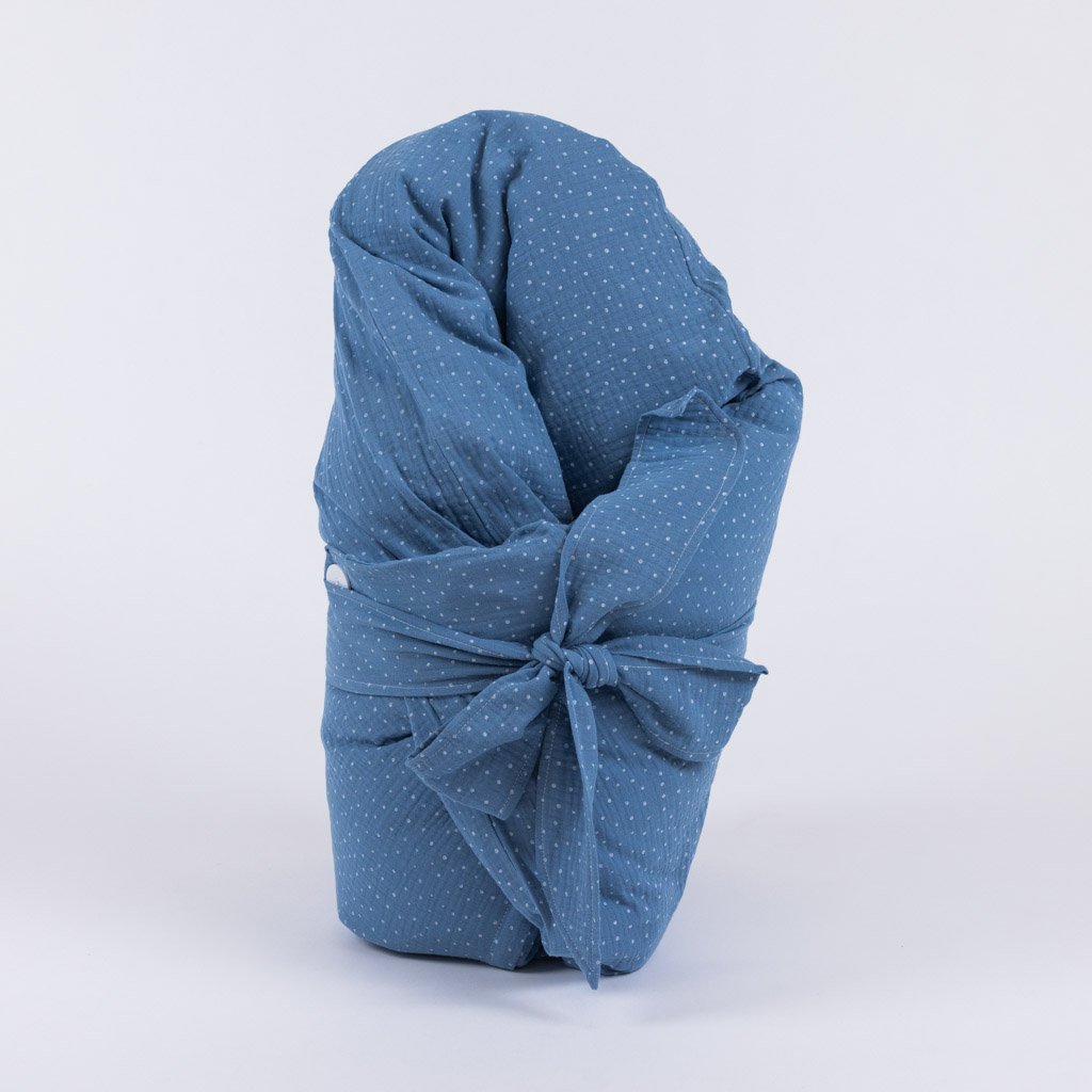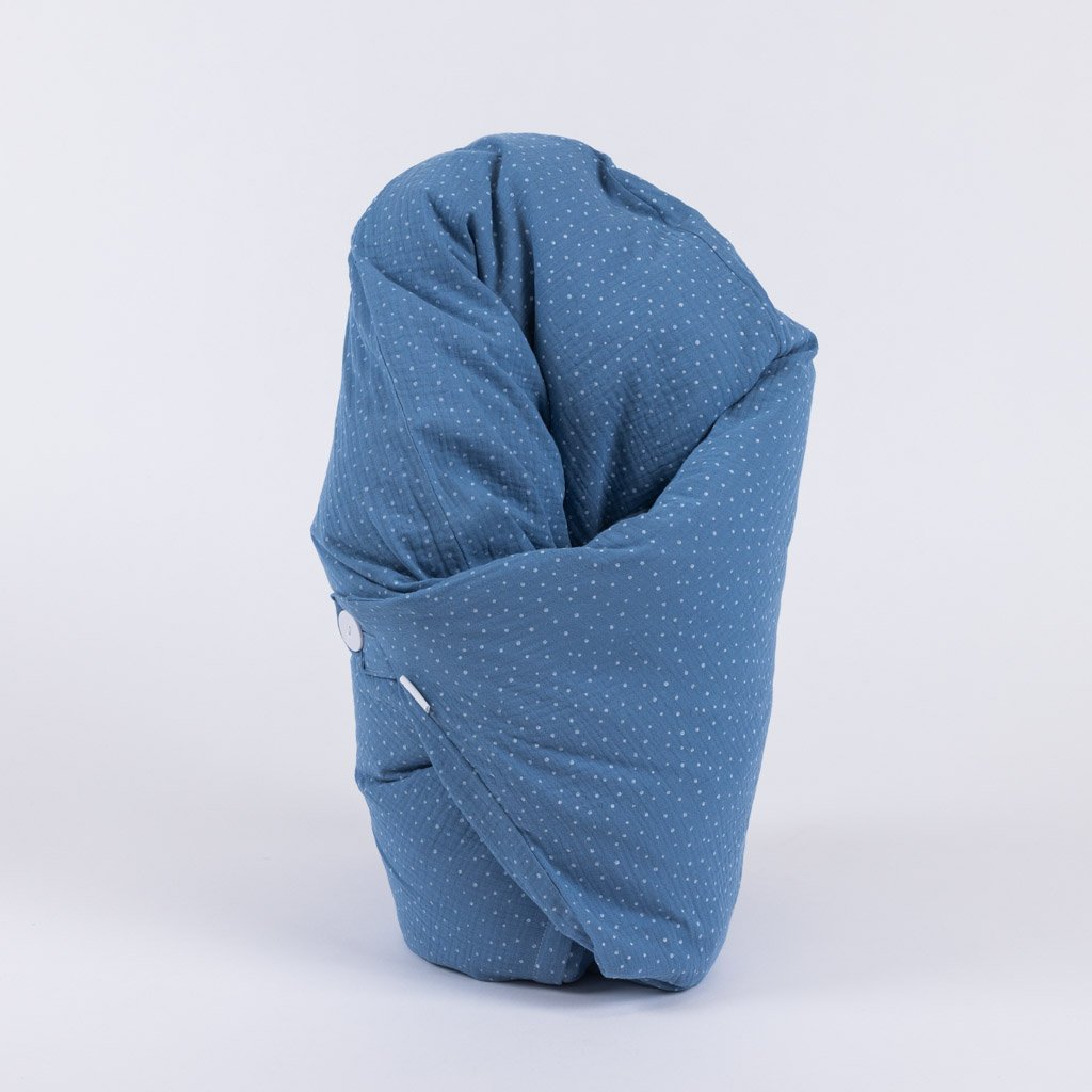 Péřová zavinovačka mušelínová indigo s puntíkem