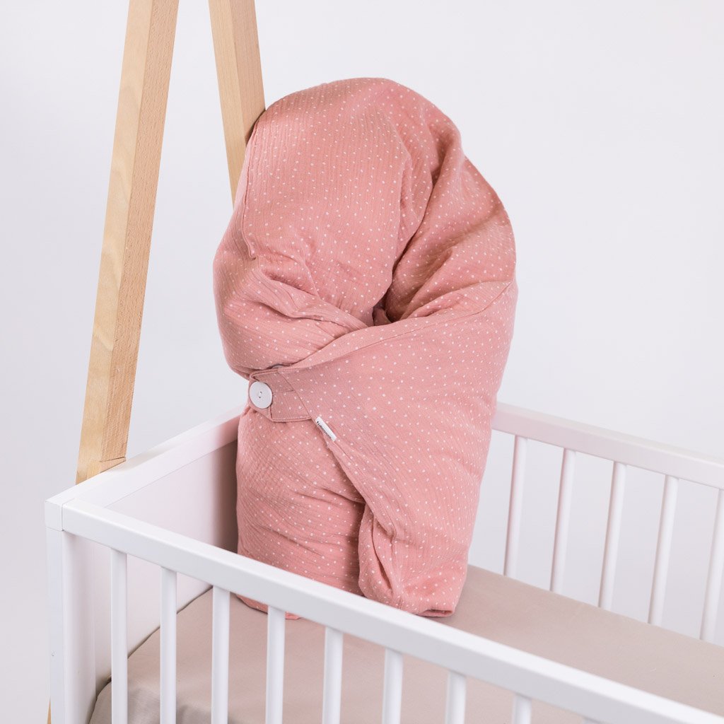 péřová zavinovačka je součástí barevně sladěné sady výrobků pro miminko SADY MUŠELÍNOVÉ PUNTÍKATÉ.