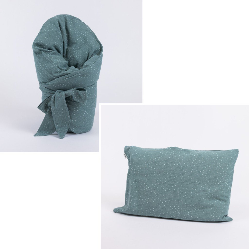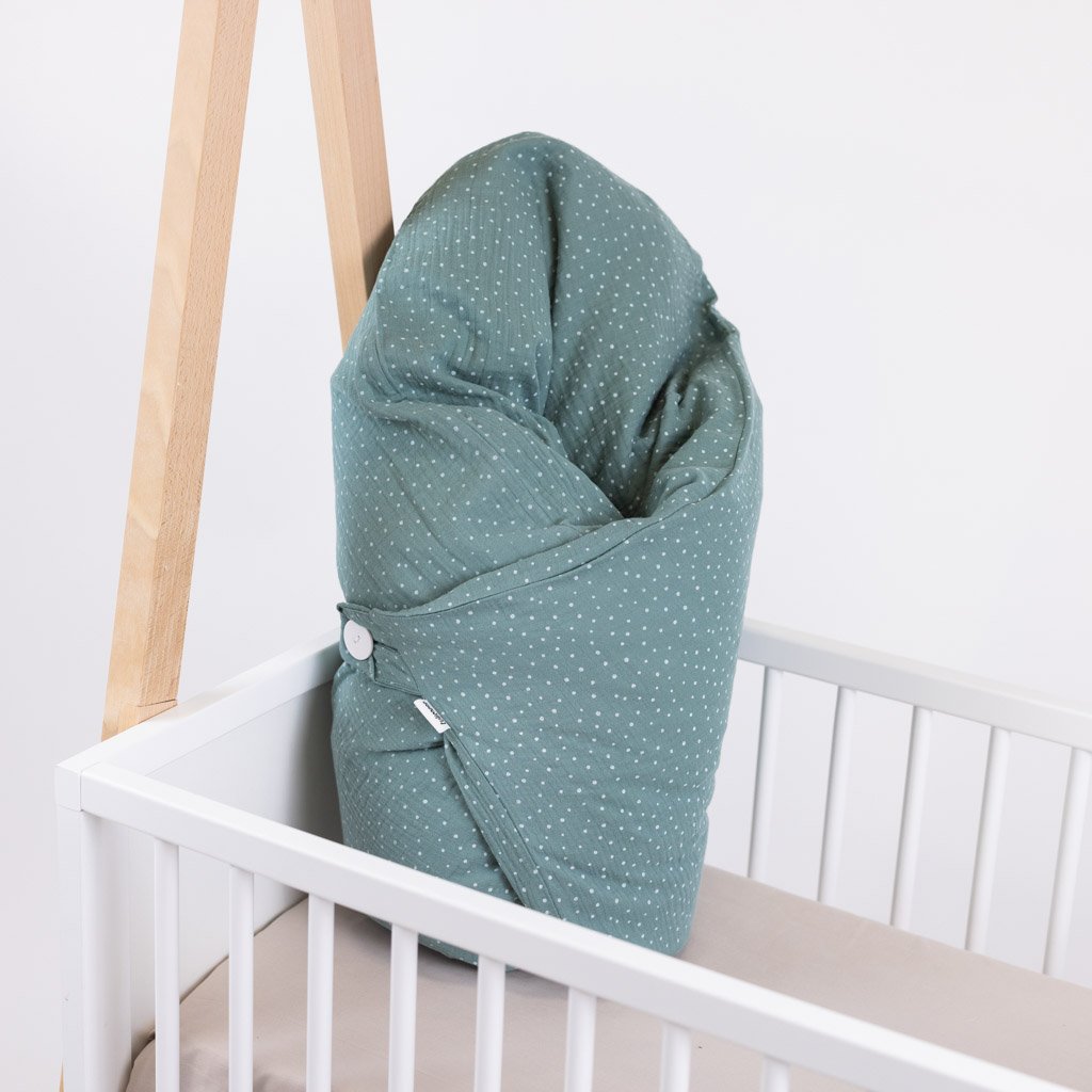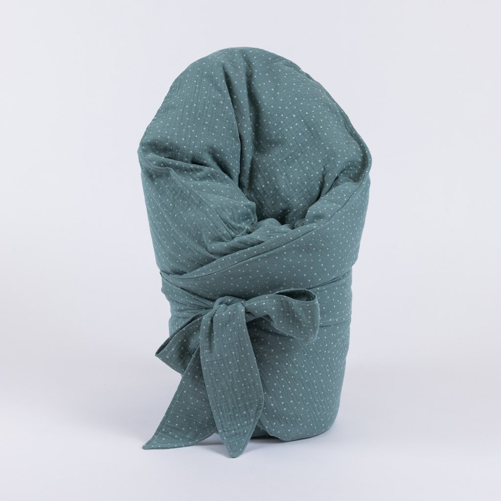 péřová zavinovačka je součástí barevně sladěné sady výrobků pro miminko SADY MUŠELÍNOVÉ PUNTÍKATÉ.