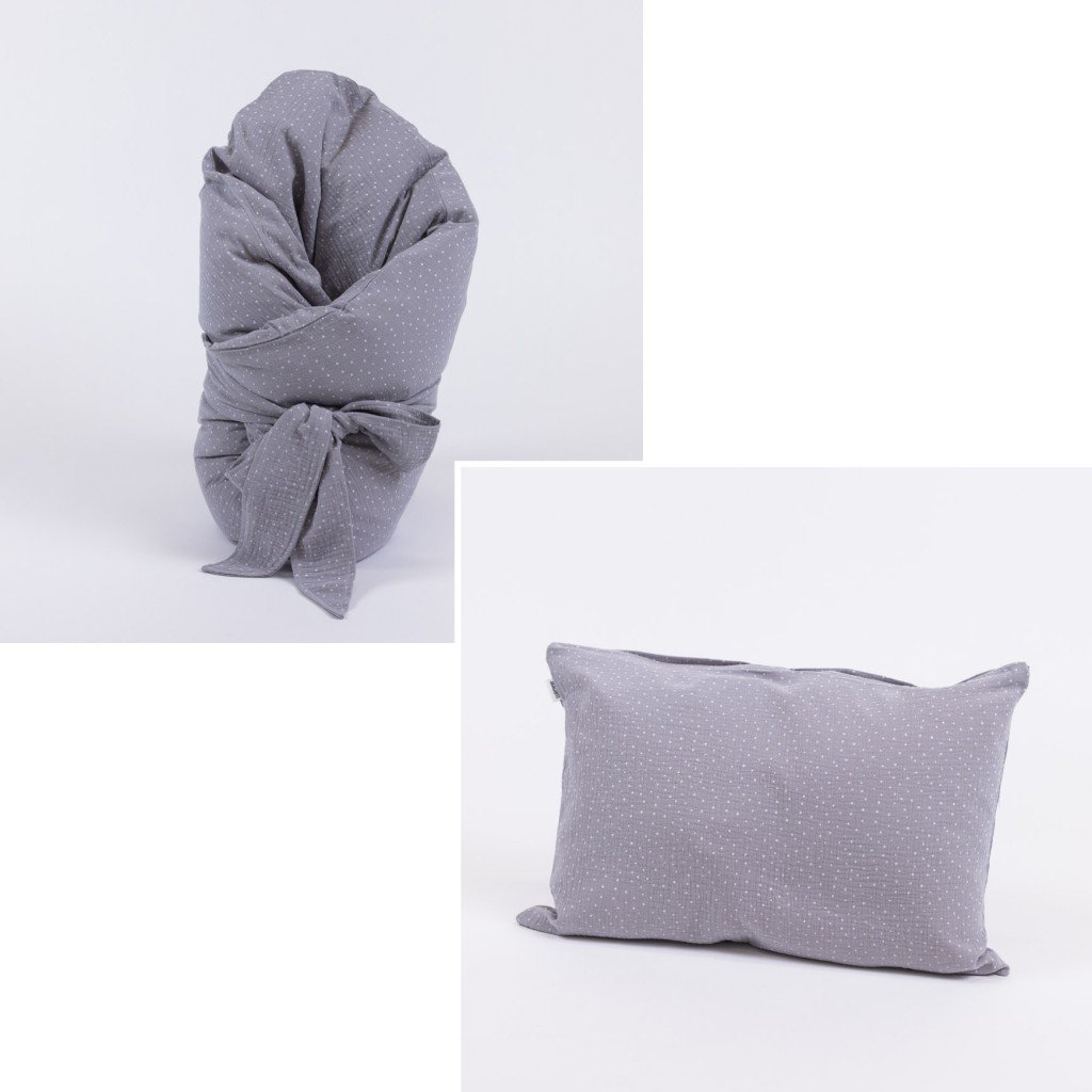Péřová zavinovačka mušelínová šedá s puntíkem