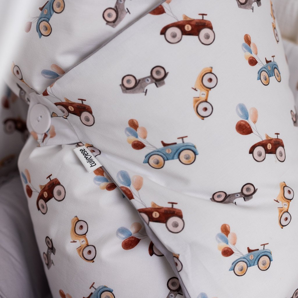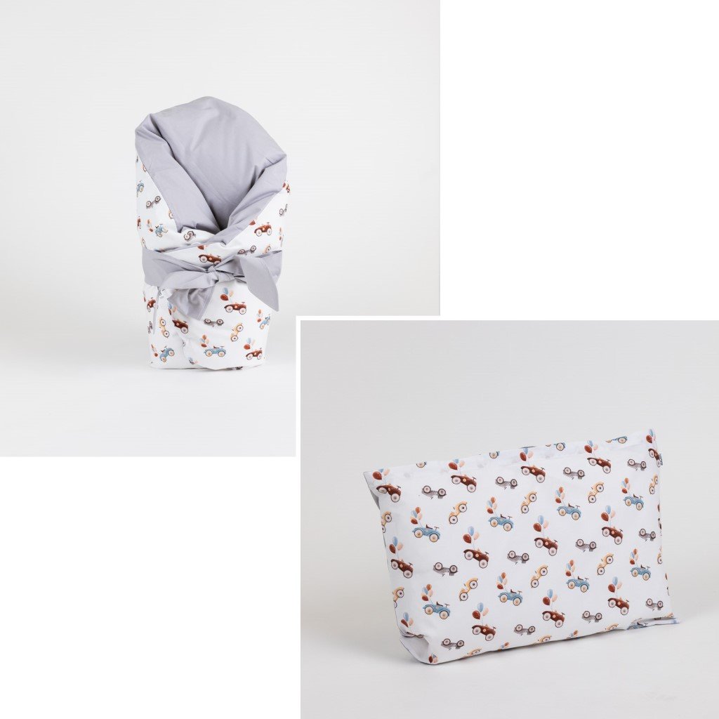 ZAPÍNÁNÍ NA KNOFLÍKY A MAŠLI + PODKLADNÍ POLŠTÁŘEK – polštářek zajišťuje zvýšenou oporu pod hlavičkou miminka, která pomáhá při rýmě nebo refluxu. Lze využít i jako měkkou podložku. Polštářek je vyplněn kvalitním husím peřím. Součástí této varianty je péřová výplň i povlak.