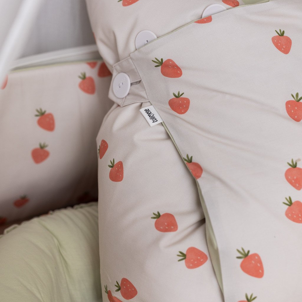 ZAPÍNÁNÍ NA KNOFLÍKY A MAŠLI + PODKLADNÍ POLŠTÁŘEK – polštářek zajišťuje zvýšenou oporu pod hlavičkou miminka, která pomáhá při rýmě nebo refluxu. Lze využít i jako měkkou podložku. Polštářek je vyplněn kvalitním husím peřím. Součástí této varianty je péřová výplň i povlak.