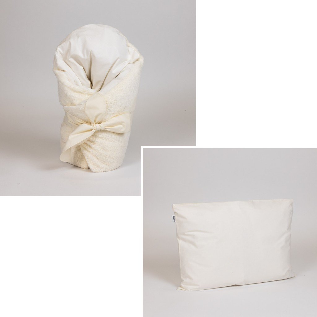 ZAPÍNÁNÍ NA KNOFLÍKY A MAŠLI + PODKLADNÍ POLŠTÁŘEK – polštářek zajišťuje zvýšenou oporu pod hlavičkou miminka, která pomáhá při rýmě nebo refluxu. Lze využít i jako měkkou podložku. Polštářek je vyplněn kvalitním husím peřím. Součástí této varianty je péřová výplň i povlak.