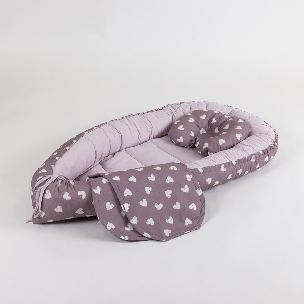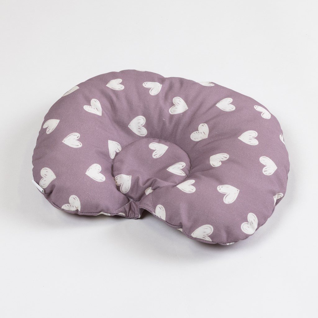 - Podhlavníček je součástí barevně sladěné sady výrobků pro miminko SADA FIALOVÁ SRDCE.