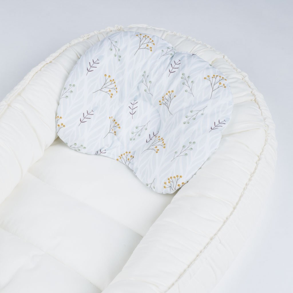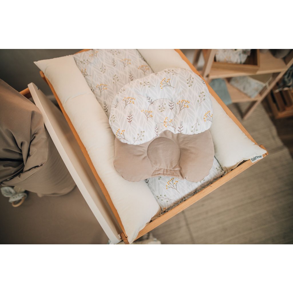 - Podhlavníček je součástí barevně sladěné sady výrobků pro miminko SADA KŘEHKÉ ROSTLINKY.