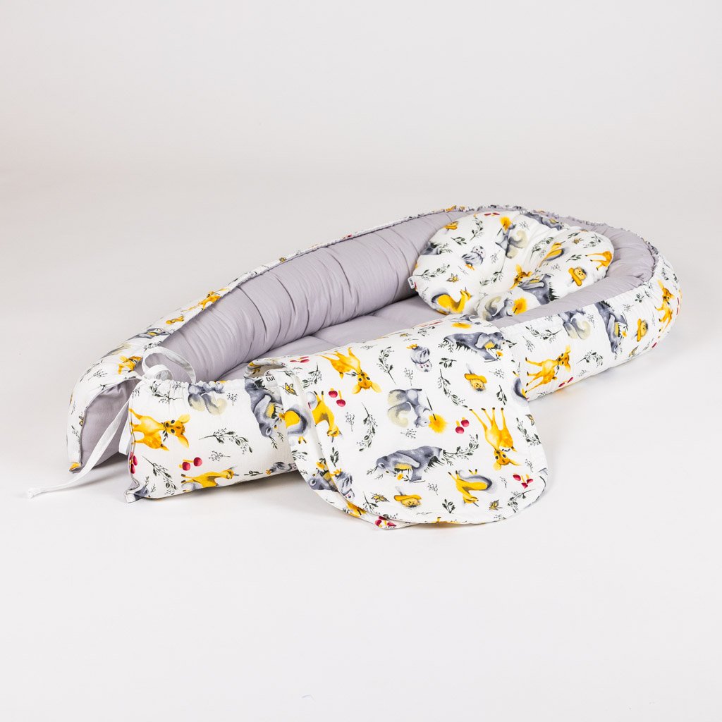 Podhlavníček pomáhá zafixovat hlavičku miminka ve správné poloze a zabraňuje jednostrannému zploštění hlavičky. Je vhodný nejen do hnízdeček, ale i postýlek, autosedaček i kočárků, kde tlumí případné nárazy. Podhlavníček se skládá z vyvýšeného půlkruhu kolem hlavičky a plochého vnitřního kolečka pod hlavičkou a krkem miminka.