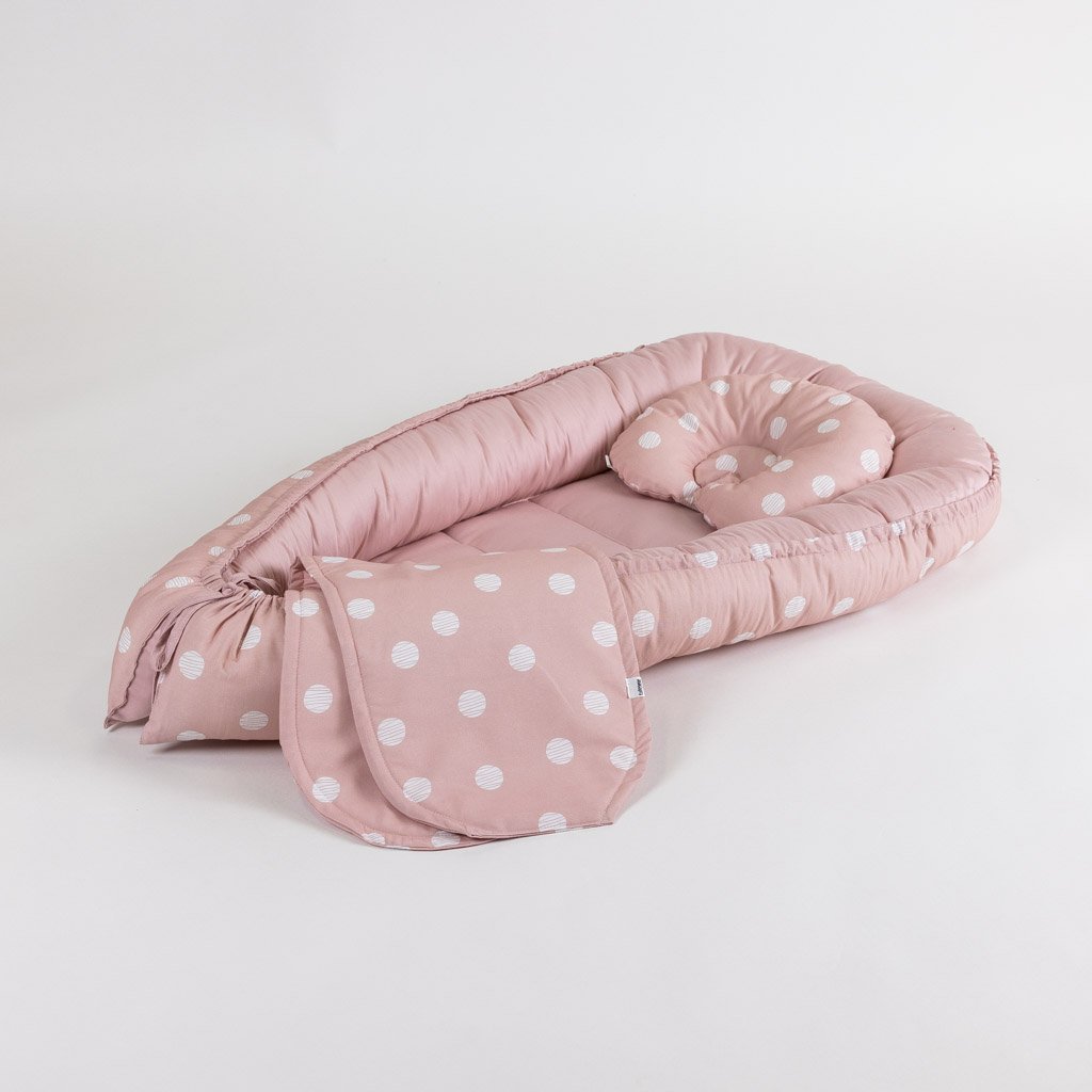 - Podhlavníček je součástí barevně sladěné sady výrobků pro miminko SADA RŮŽOVÁ KLUBÍČKA.