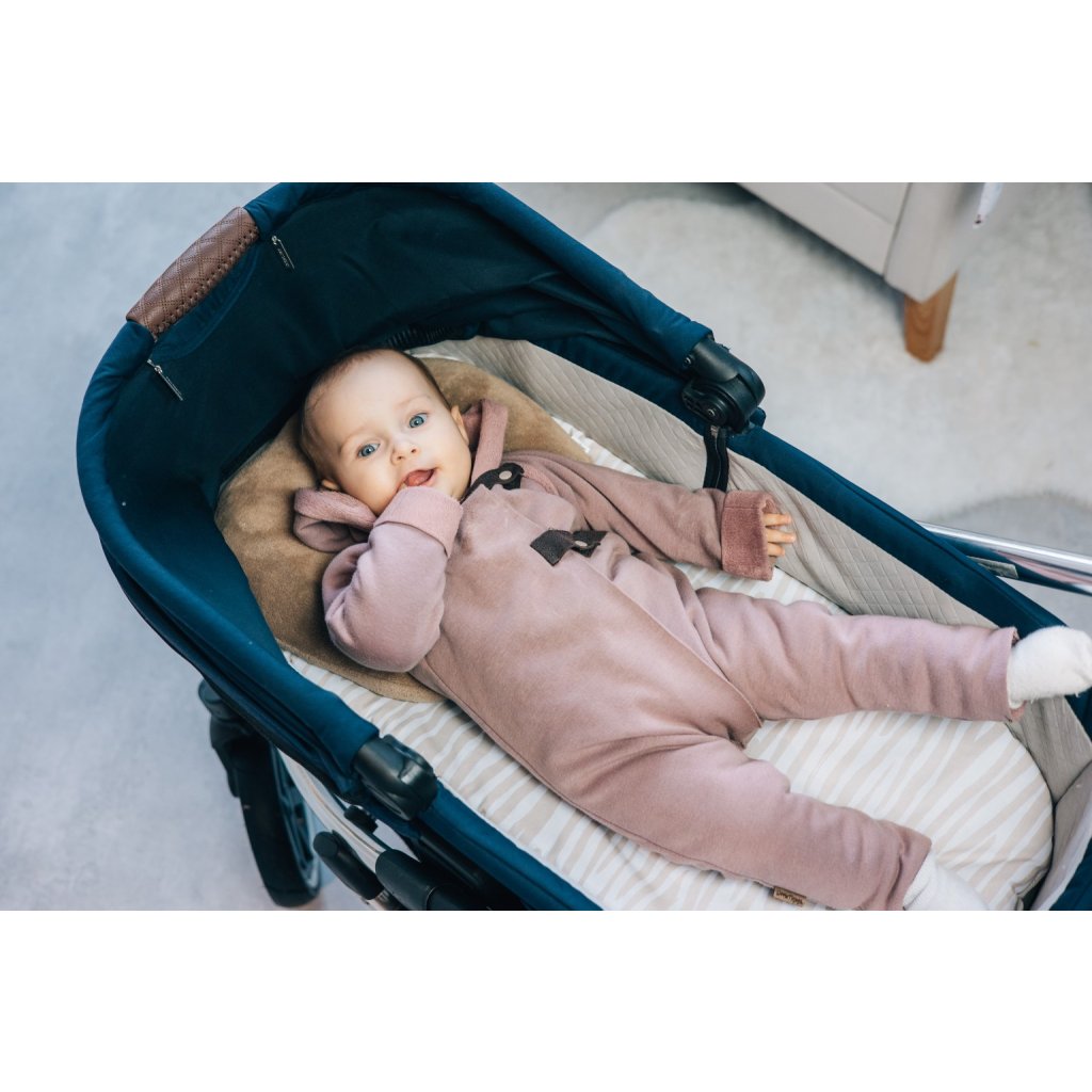 Podložka zútulní a vyplní prostor v korbičce kočárku. Podložka nemá prostřihy na pásy. Její měkkost a nadýchanost zajišťuje pohodlí miminka hlavně při jízdě na nerovném terénu. Podložku oceníte hlavně v létě, kdy na ni může miminko spinkat jen zabalené v dečce. Podložka je vyplněna super měkkou vatelínovou výplní, která dokáže miminko hýčkat. Do kočárku máme ve stejném barevném provedení i deky a podhlavníčky. Super kombinace je bavlněná podložka spolu s mušelínovou dečkou a podhlavníčkem.