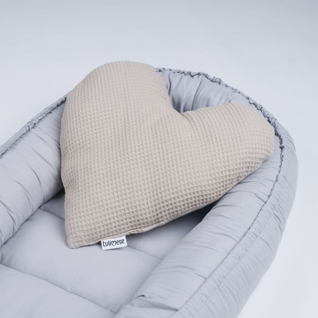 Polštářek ve tvaru srdce krásně doladí dětskou postýlku či pokojíček.