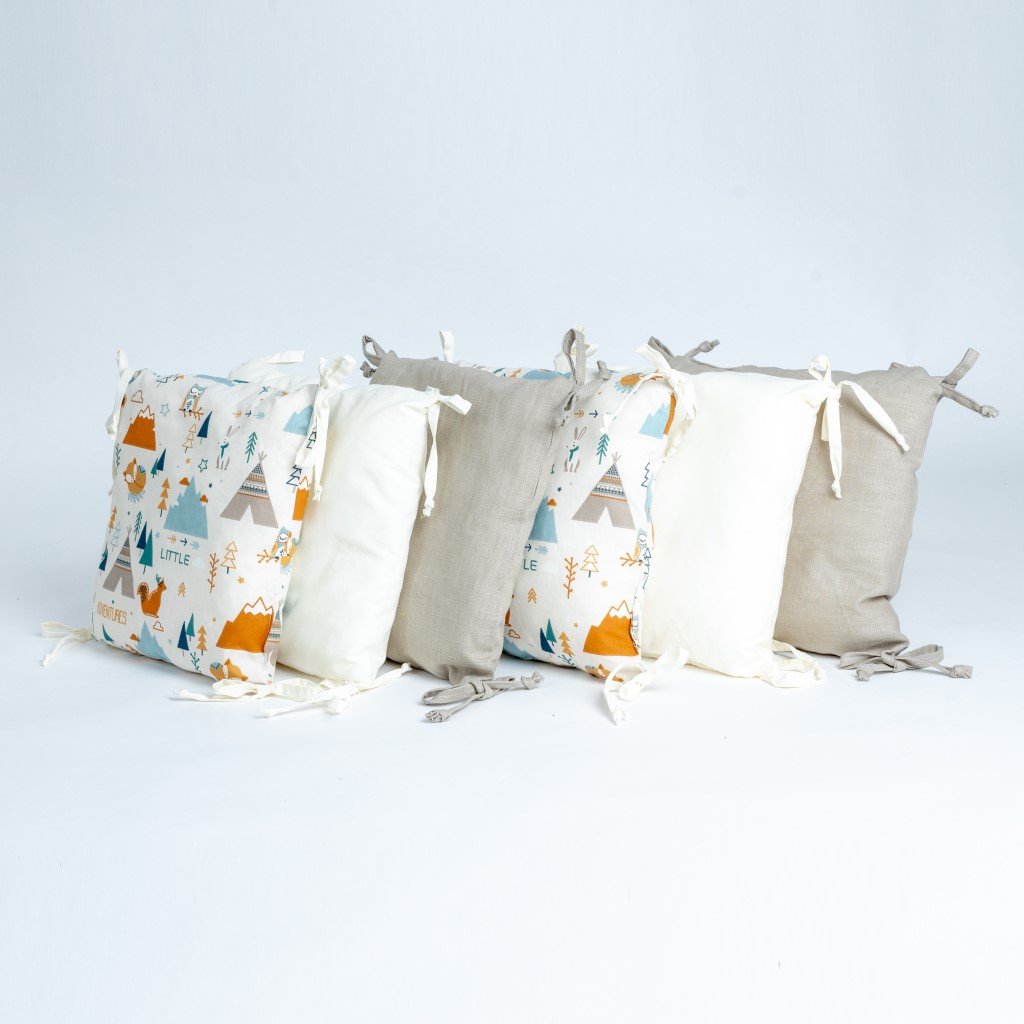- Polštářkový mantinel je součástí barevně sladěné sady výrobků pro miminko SADA BÉŽOVÉ TEEPEE a SADA JEDNOBAREVNÁ LNĚNÁ.